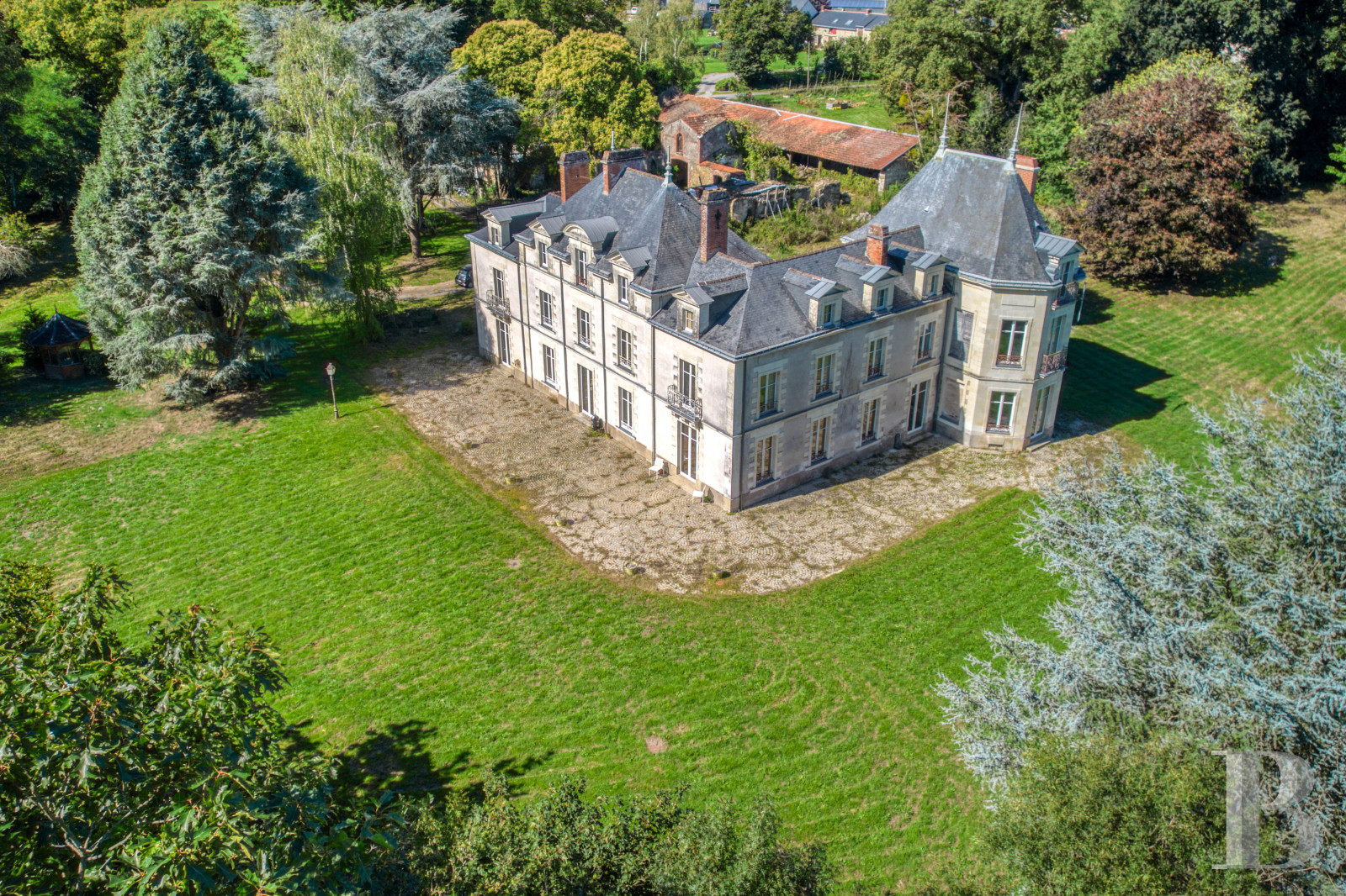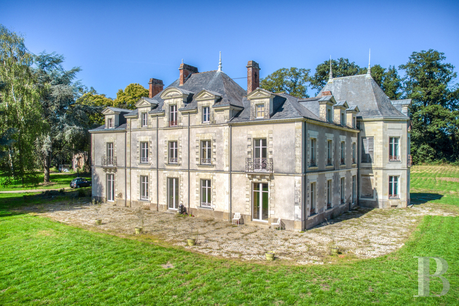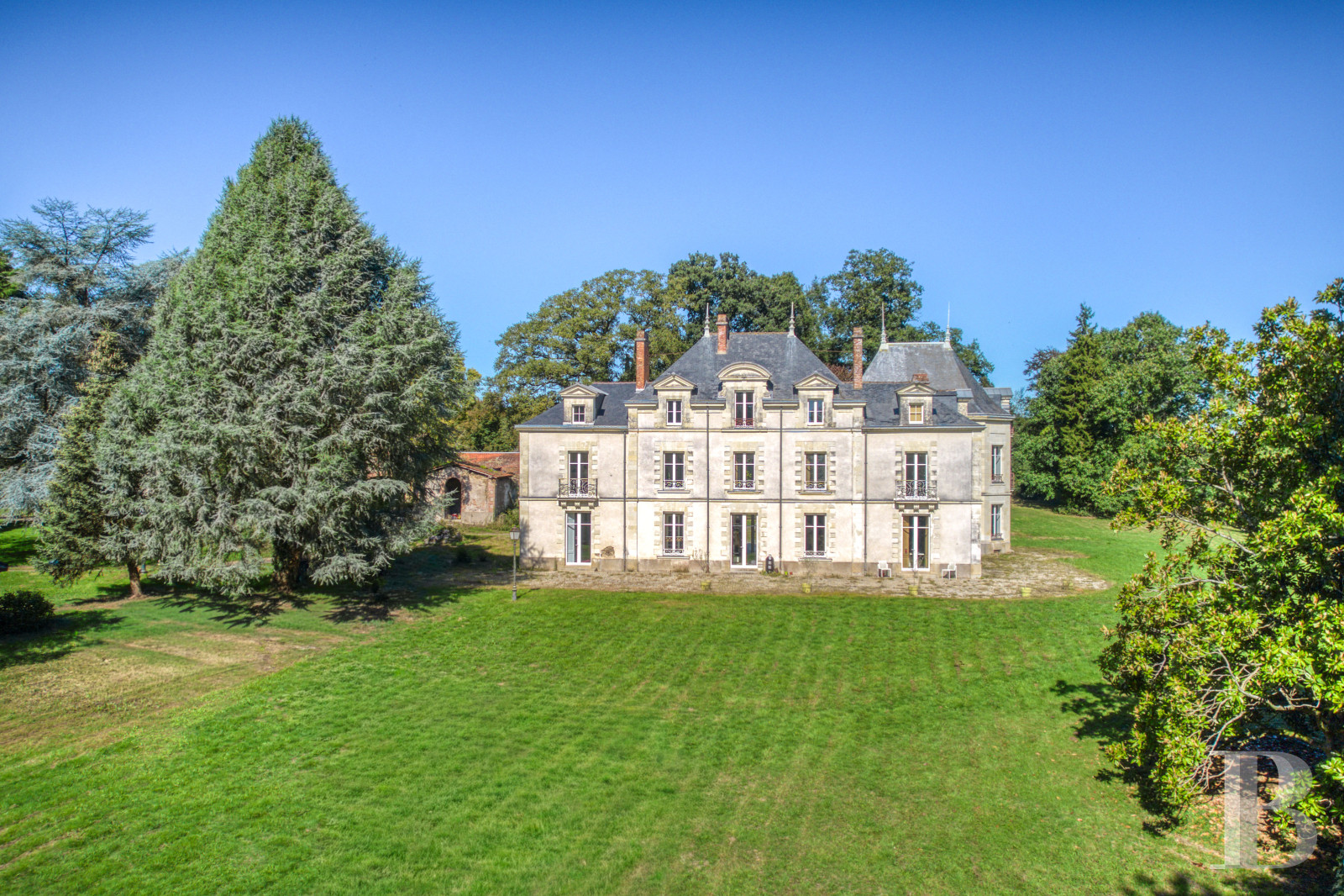 Ideally located, this elegant 19th-century chateau recently underwent an initial, meticulous renovation, but some finishing work still remains to be carried out in order to personalise and adapt its already luminous, comfortable and remarkably energy-efficient interior. Moreover, its future occupants will also be able to focus on the renovation of the former outbuildings, which promise immense additional volumes and multiple uses. On the outskirts of Nantes, the property and its soaring multi-century trees would be perfect for a large family or a company’s headquarters, nestled within a bucolic setting and yet, within easy reach of the nearby motorway network.