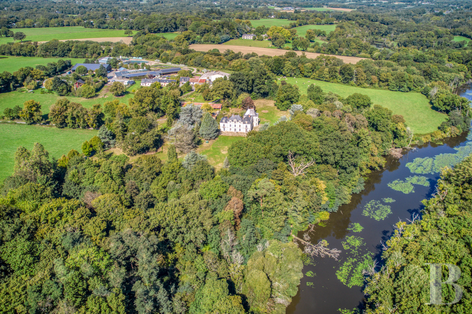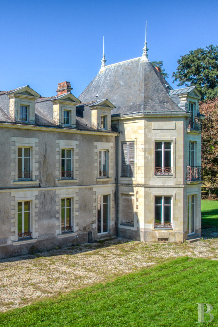 Built on a foundation of granite and schist and overlooking a small river, the current chateau dates from the 19th century – although the presence of a dwelling on this land goes all the way back to the 16th century – while its complex layout reveals its successive expansions, with the addition of two right-angle wings, followed by a lateral pavilion.