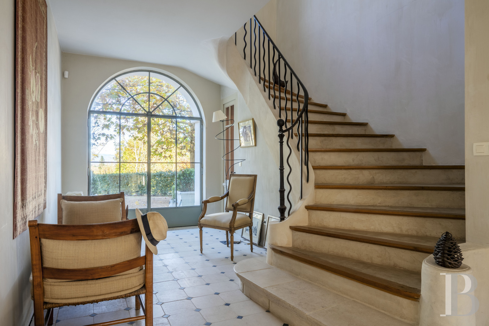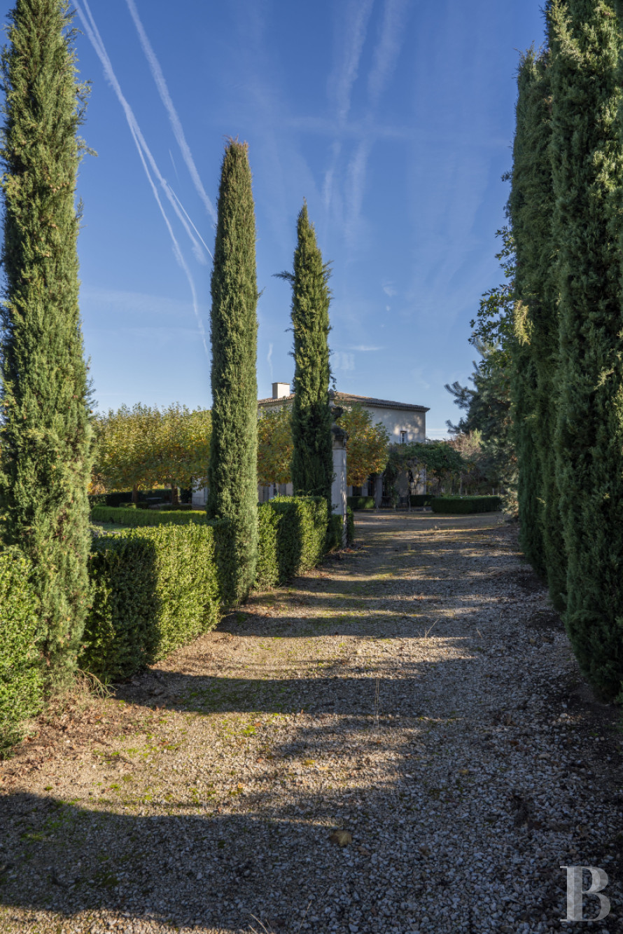 The grounds are edged with an enclosing wall and structured with a driveway lined with cypresses. They are dotted with plane trees, age-old oaks and box hedges. An abundance of lavender and extensive dry-stone retaining walls give the grounds a distinctly Mediterranean feel.
