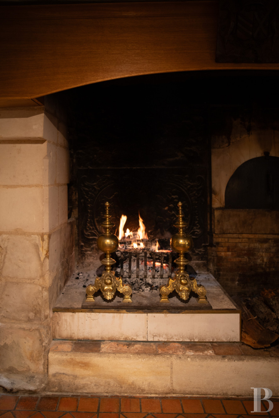 The ground floor has a kitchen with a dining area, a scullery and an 8m² utility and boiler room. The dining room has a floor of terracotta tiles and a French-style beamed ceiling. In one of the walls, there is a tuffeau-stone fireplace, inside which a door leads to the bakehouse. From this room, which leads out to both the front and back of the house, a stone spiral staircase leads to the two upper floors.