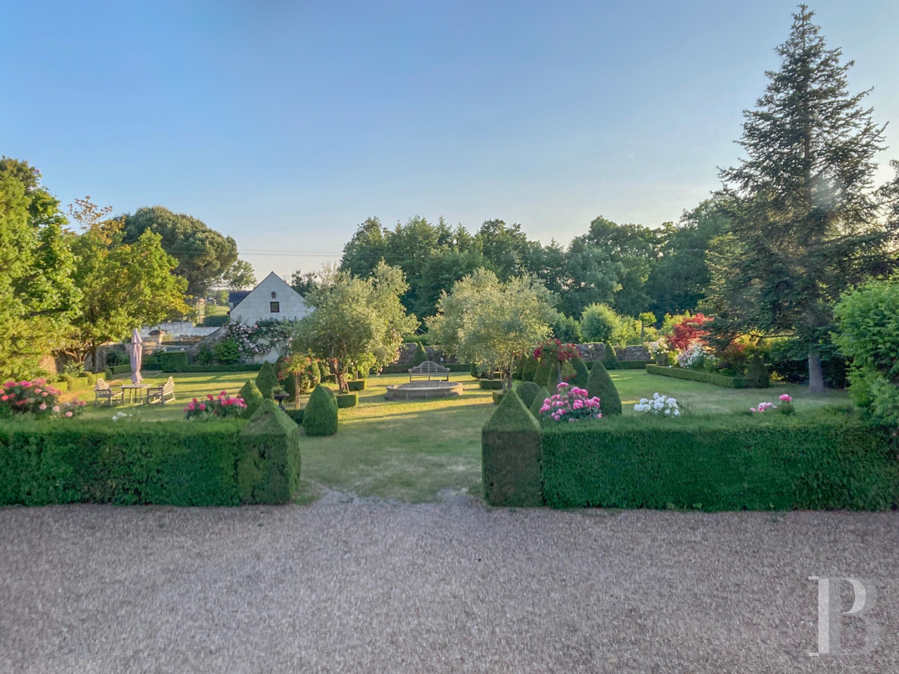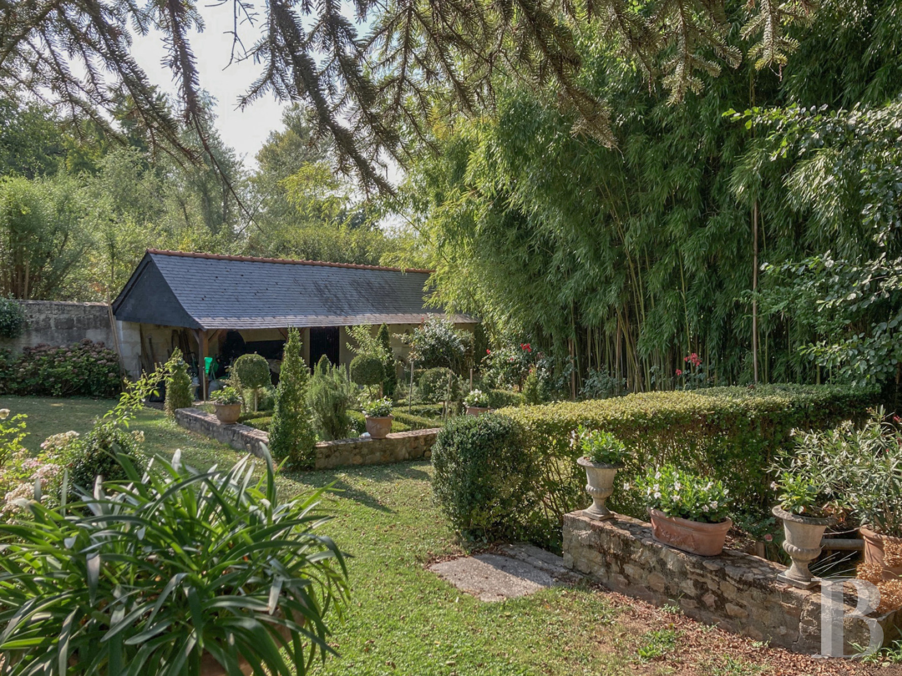 The grounds cover almost one hectare. The gravelled courtyard is embellished with roses, hydrangeas and agapanthuses. Extensive trellising is fixed to the wall that separates the property from the neighbouring property. Next, there is a French formal garden, which is partly walled. This well-designed garden is arranged around a central pond, which is framed between two rows of neatly trimmed box hedges. There are flowerbeds of rose bushes, also edged with box hedges, and beds of herbs, as well as hornbeam hedging. In one corner, a spring flows up and out. Indeed, this spring is the source of a river that then crosses the local countryside and runs into the River Loire. A greenhouse stands on one of the two earthen terraces. It has been restored and is fitted with water inlets and electrics. Lastly, there is a wilder section: a natural transition towards the surrounding countryside. On the grounds, there are also three wells, including a vaulted one.