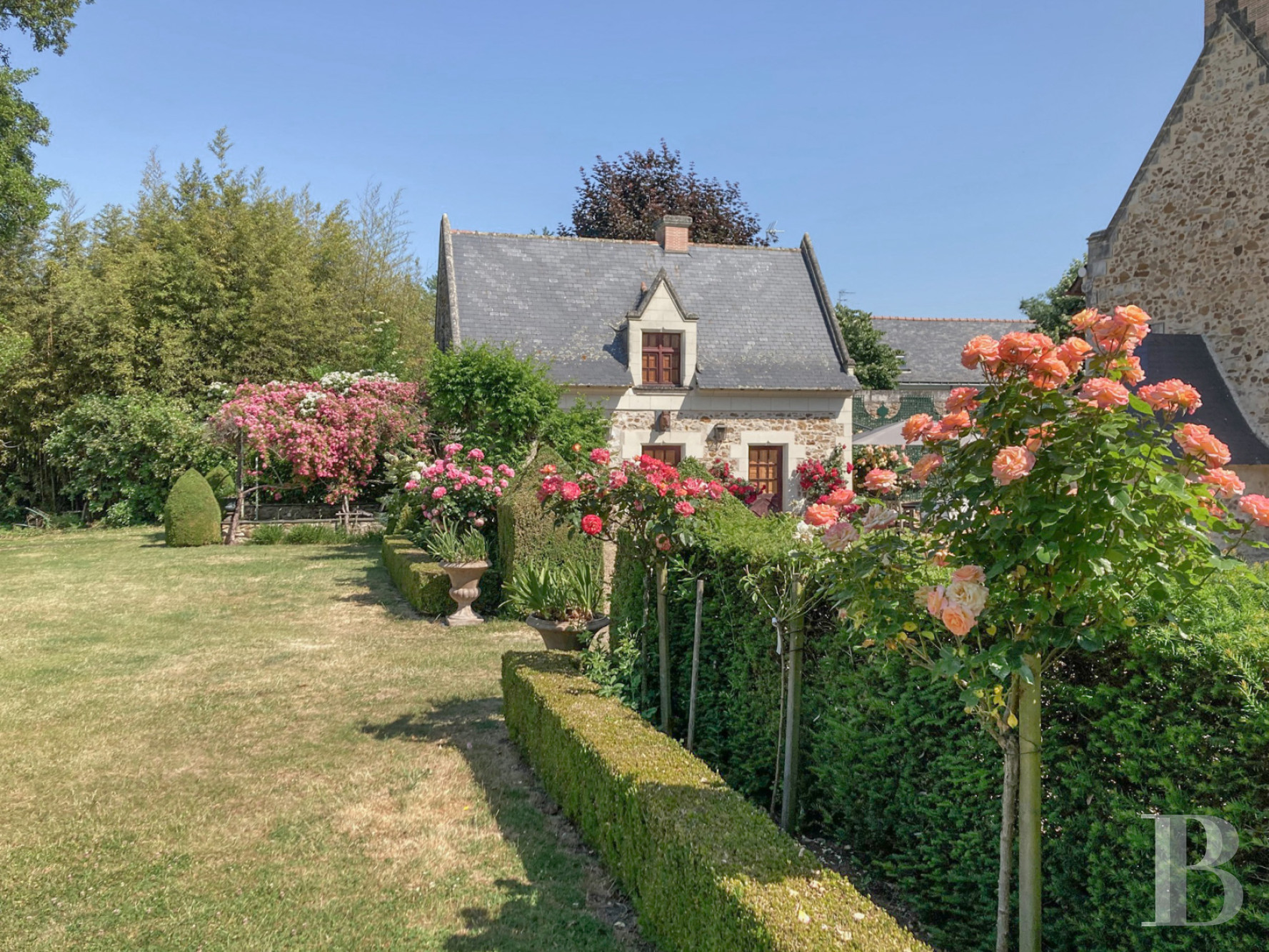 The second guesthouse stands at the bottom of the French formal garden. It has a ground floor and a first floor in the roof space. It is made of tuffeau stone and is crowned with a gabled slate roof with a dormer up to which an outdoor flight of schist stone steps climbs. A sandstone-paved terrace lies in front of the facade. An open-sided washhouse of yesteryear with its roof and tub – still filled up with water from a spring – adjoins the western gable wall.