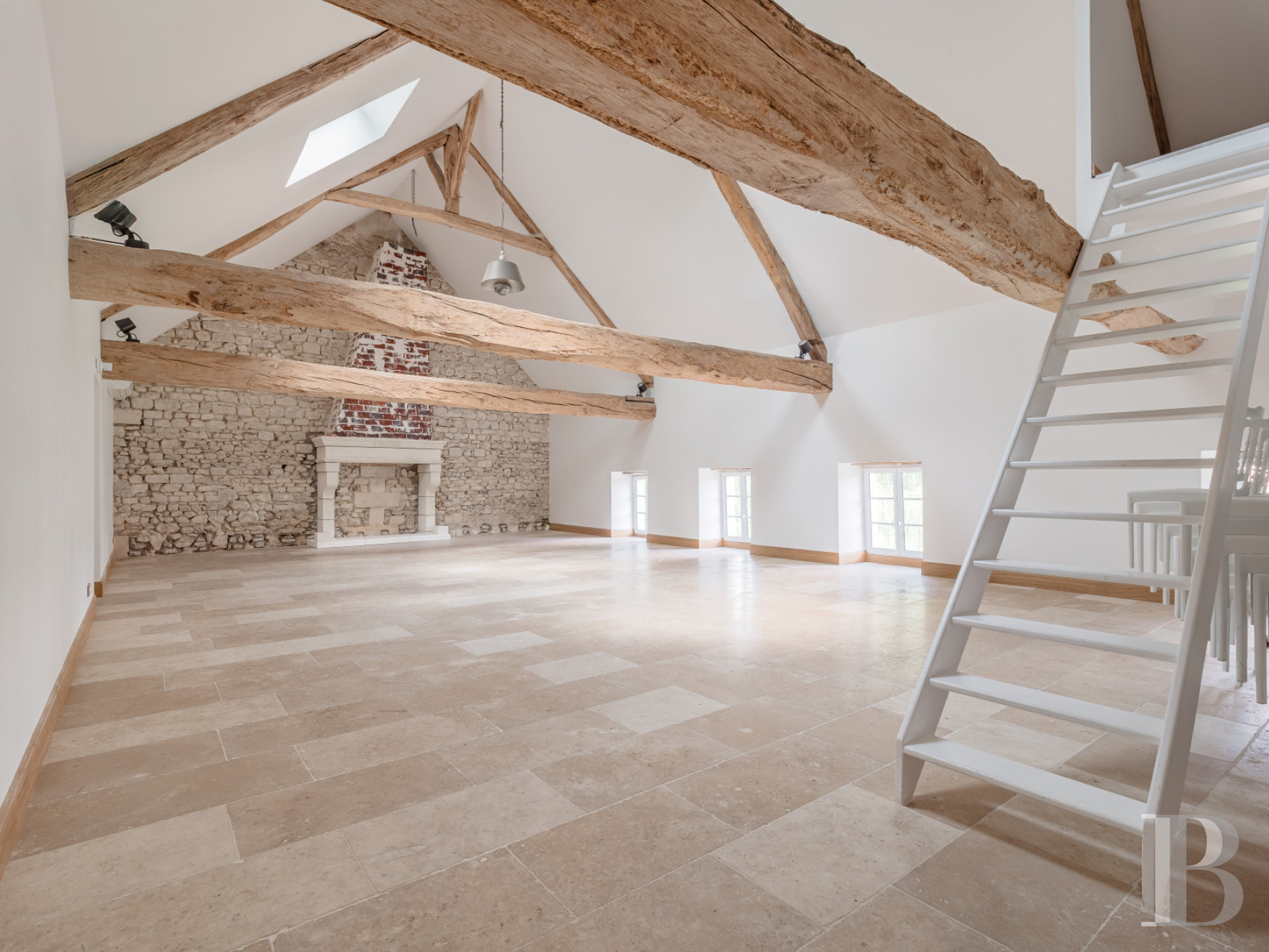 The former barn has been entirely reconverted. It has three separate sections that offer a range of possible uses, whether for accommodation or work. The first section has a 203m² floor area. On its ground floor, it has two lavatories with washbasins and stairs that lead to a 95m² reception room. There are exposed beams, walls of exposed stonework, an old fireplace and an integrated kitchen. A mezzanine looks down at the room. Beyond this space, there is a 108m² two-floor apartment. On its ground floor, it has a double lounge with a fully fitted open-plan kitchen, a cloakroom and a lavatory with a washbasin. Upstairs, it has a main bedroom, a dormitory with three beds, a shower room and a utility room. The second section has a floor area that covers more than 95m². It is currently used as a workspace. On the ground floor, it has a fully fitted open-plan kitchen, a cloakroom and three lavatories. Upstairs, there are two offices, a shower room and a mezzanine that has been turned into a bedroom. This section could be transformed into a self-contained dwelling. Lastly, the third section has a 219m² floor area. It can be used for storage. It includes an 85m² workshop and a 134m² storehouse. These spaces could be adapted to different purposes according to your needs.