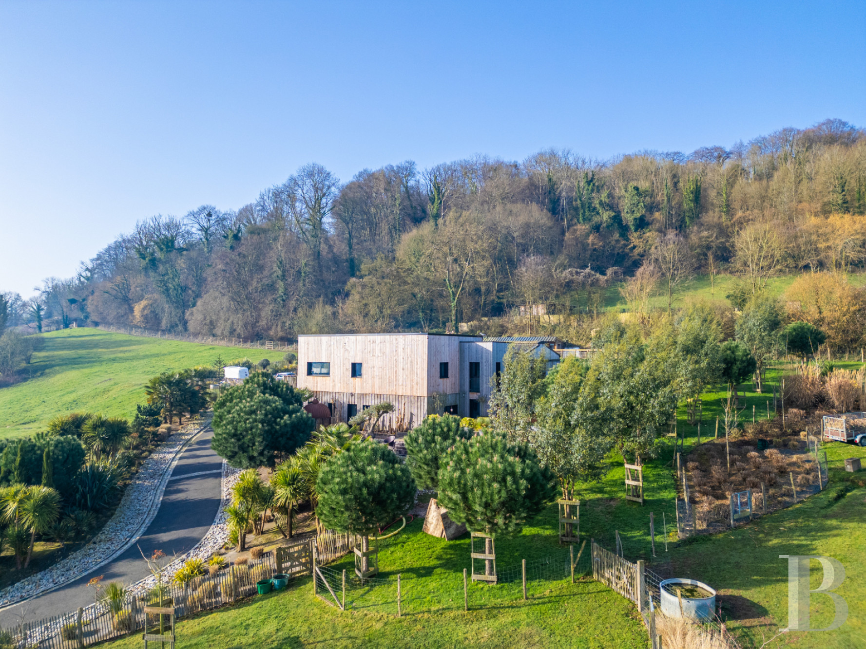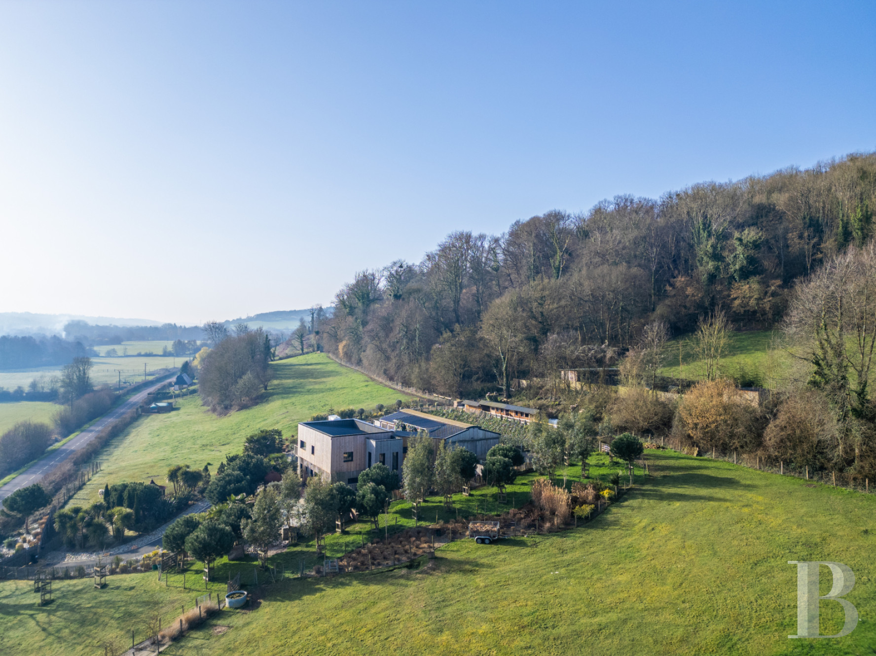 In the Pays d’Auge countryside, alternating between hedgerows and wooded valleys, this contemporary, architect-designed dwelling, both understated and elegant, features large and sunny interior spaces, which meet all modern standards of comfort and provide a remarkable living environment as well. With meticulous décor and amenities, as well as service areas that have been designed with functionality in mind, the dwelling’s fluid layout creates a home ideal for either a family, a bed-and-breakfast or holiday accommodations.