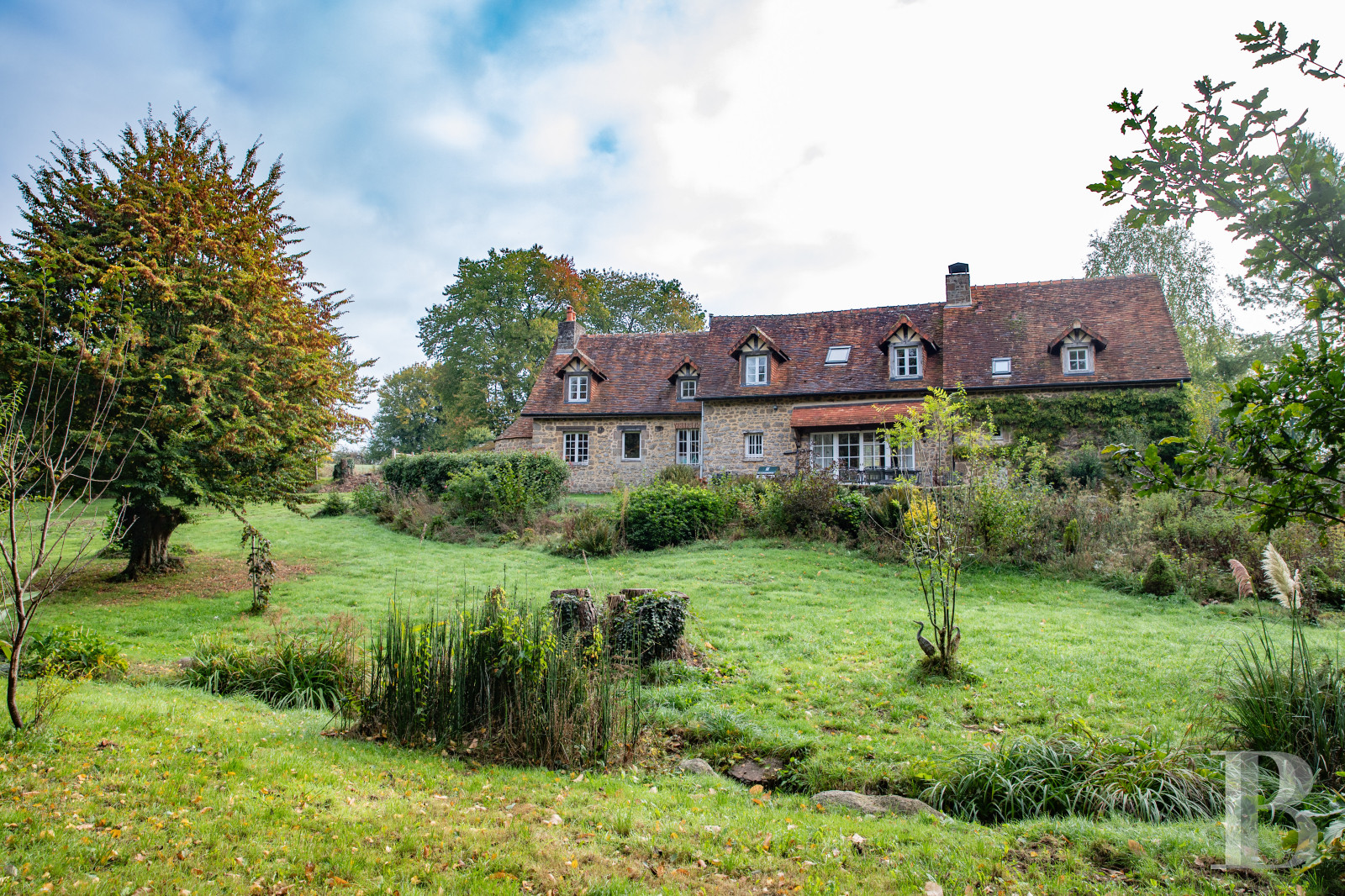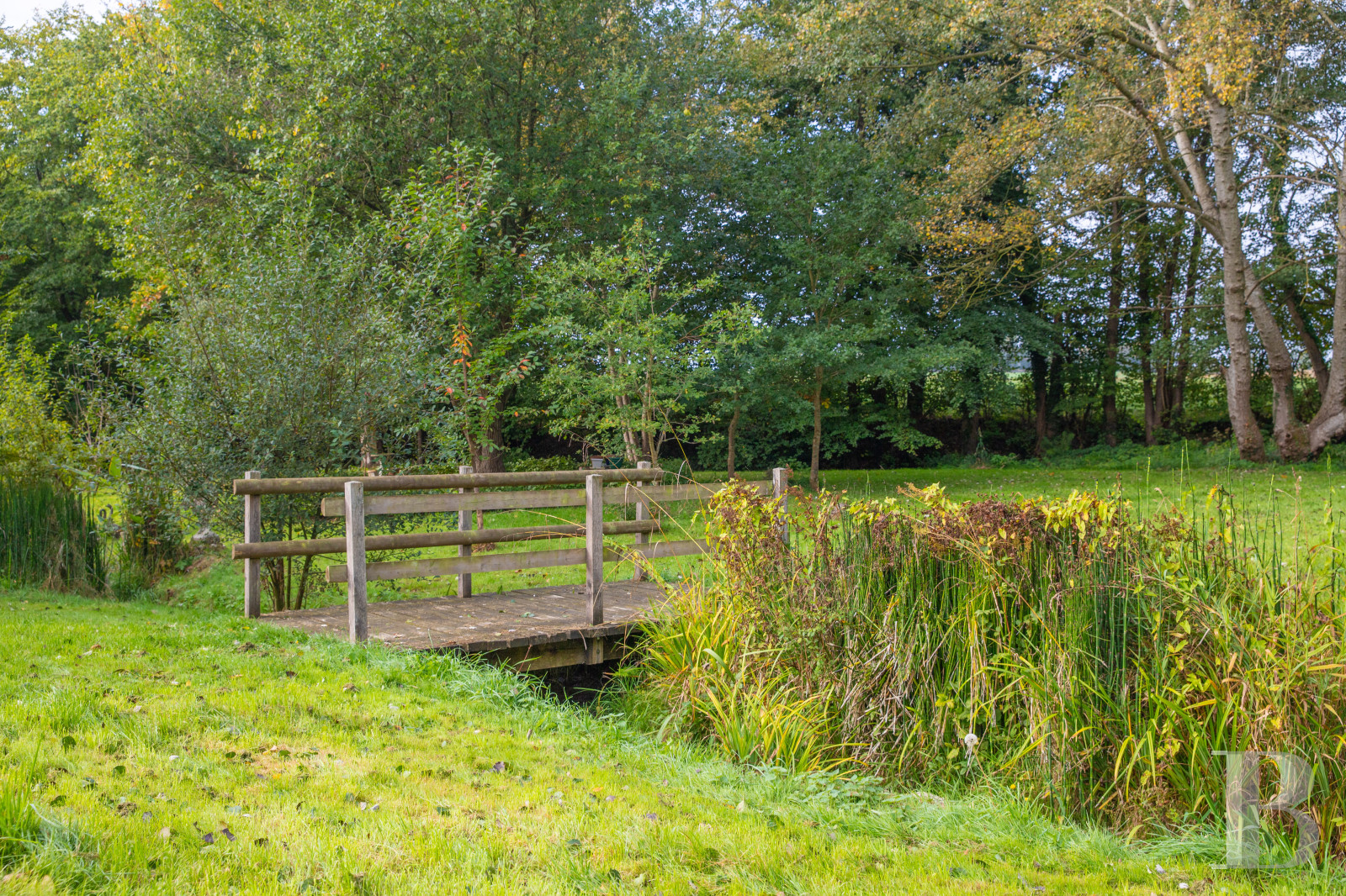 Carpeted with meadows, woods and a meticulously maintained garden, planted with mature trees and flowerbeds, the property also includes a small artificial pond located towards the southern part of the grounds.