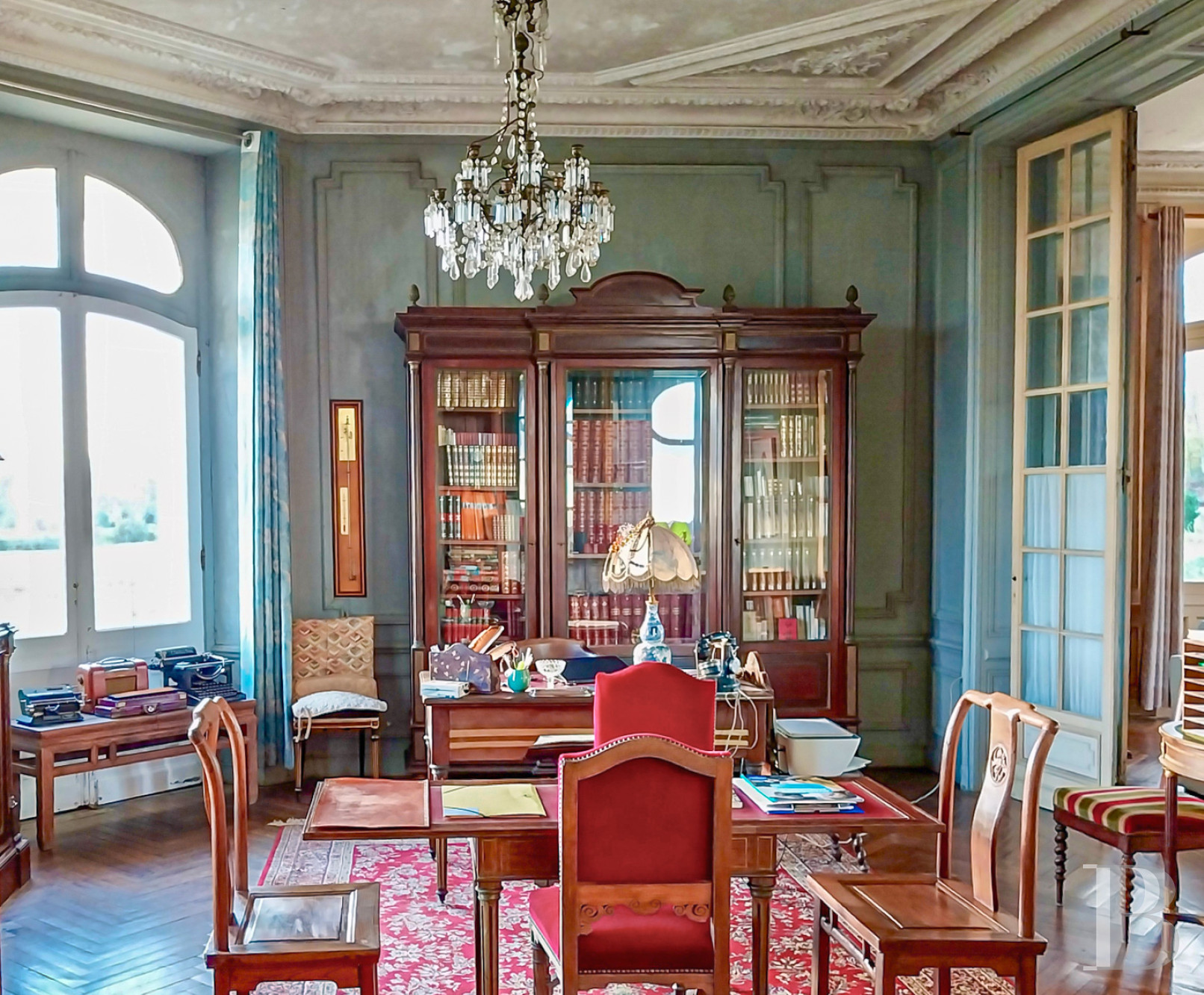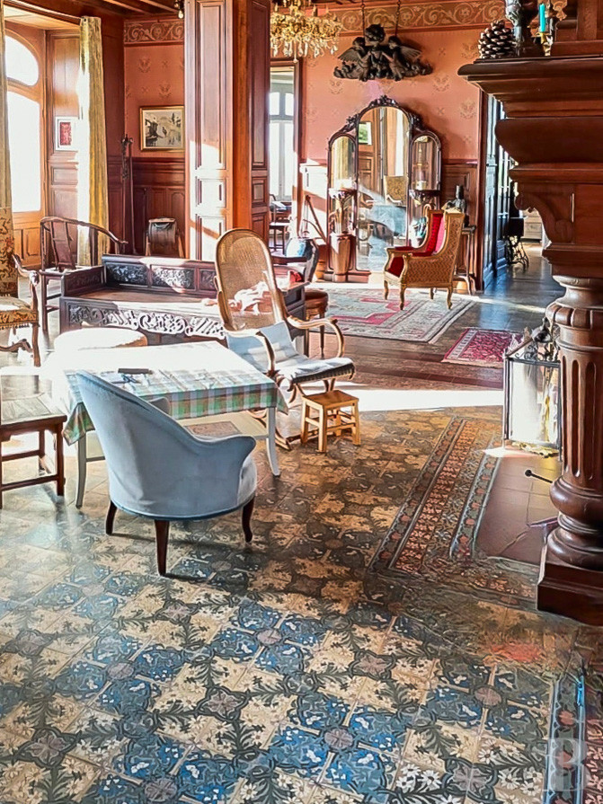 A landing takes you to a long corridor that connects to three bathrooms, two lavatories and five bedrooms, which each have a floor area between 20m² and 30m². The wood strip floors date back to the time of construction. And paintings produced by hand form decors typical of the Napoleon III style. There are many wardrobes and bespoke items of furniture in the bedrooms.