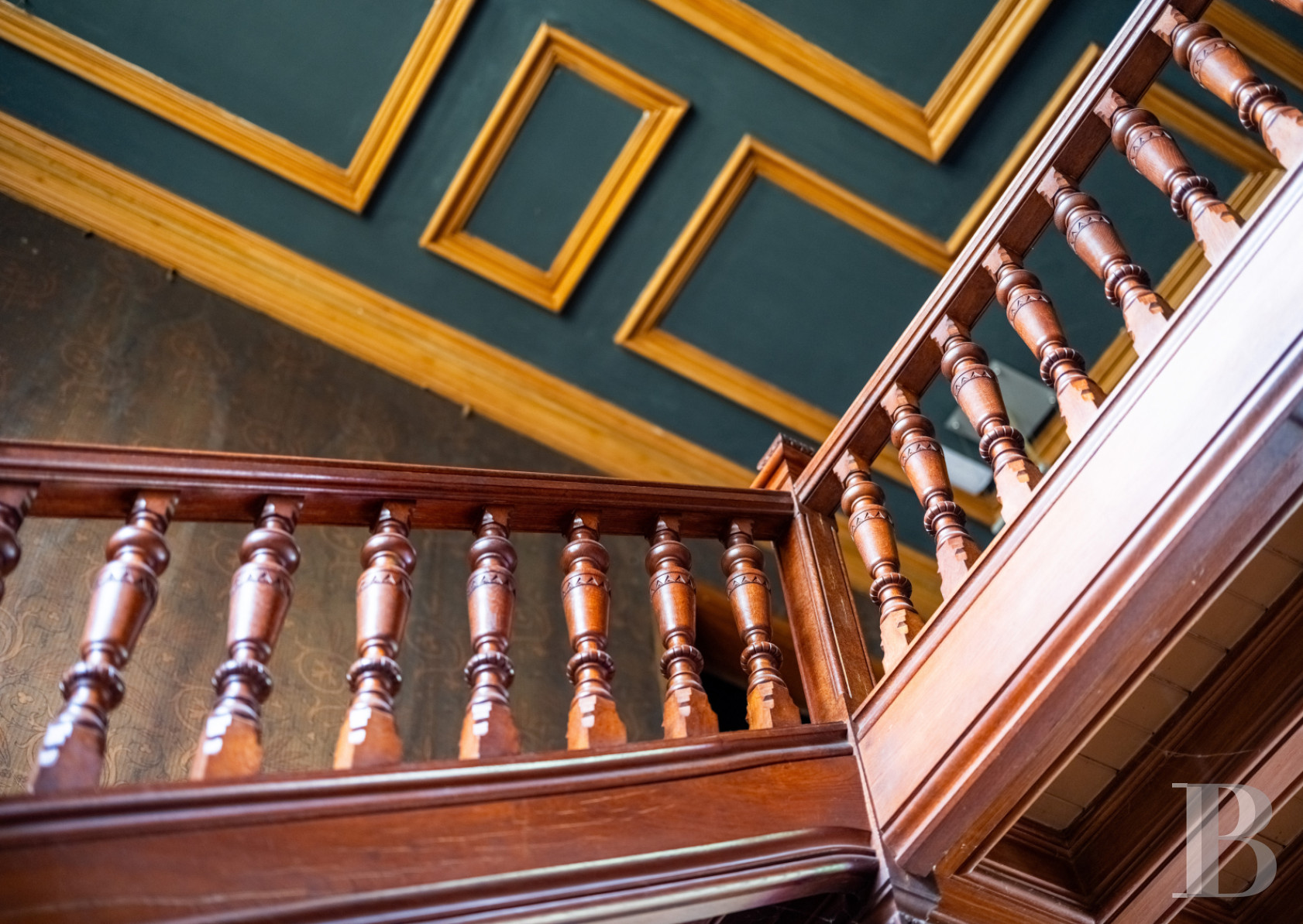 The flight of backstairs leads up to the top floor, which has sloping attic ceilings. Up here there are five bedrooms with touches of comfort identical to those on the floor below it. One of the bedrooms stands out for its floor area, which exceeds 50m². It is a dual-aspect room.