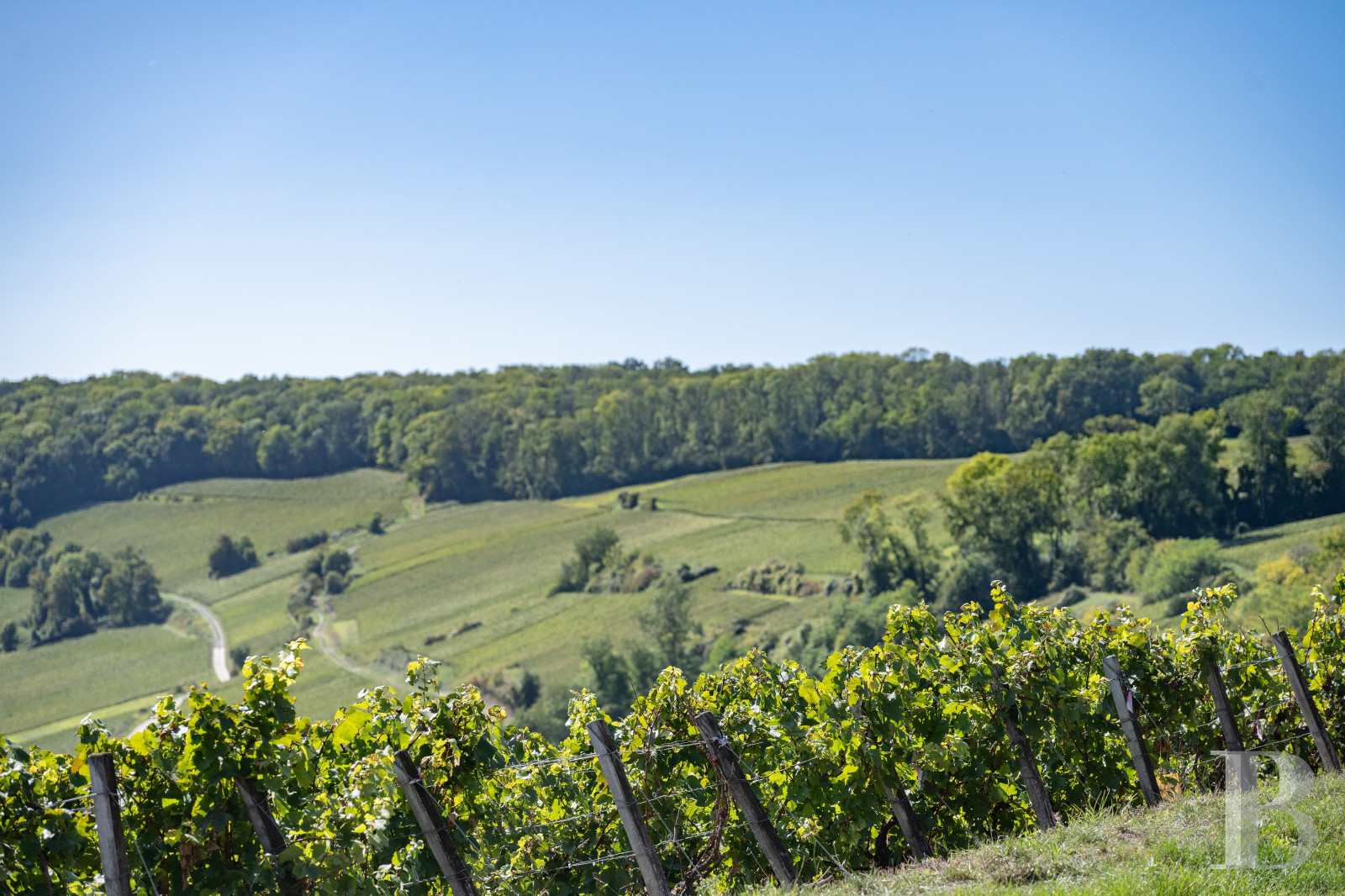 From the chateau’s balconies and windows, the view extends over the Marne River valley and the first winegrowing hillsides of Champagne, whereas the panoramas of the tall trees, the rolling countryside and the vineyards surrounding the chateau in a semicircle, create a constant dialogue between the neighbouring landscape and the chateau’s splendid architecture.
