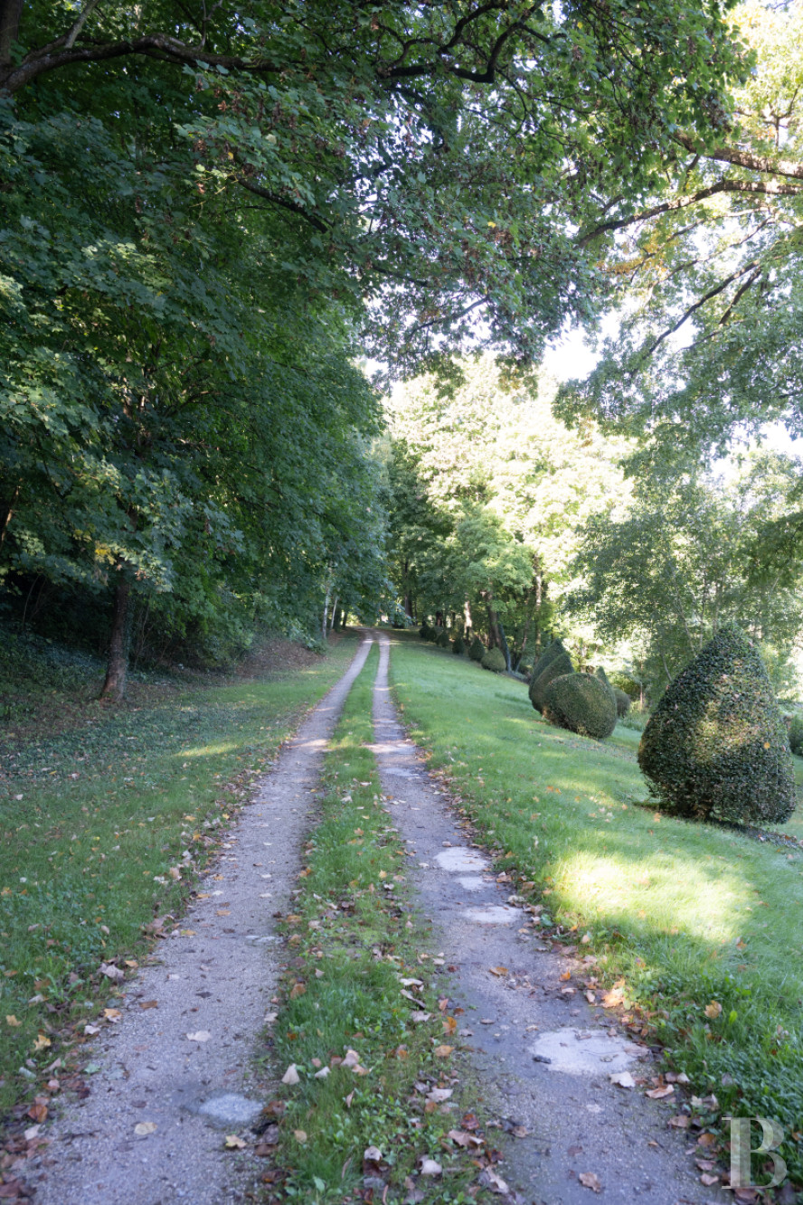 Alternating between pathways, clearings, swaths of lawn and wooded areas, the grounds are surrounded by many remarkable trees – maples, oaks, planes, a sequoia, among other venerable witnesses to the past – while a vegetable garden divided into box tree-lined squares evokes the role the property once played in nourishing its inhabitants.