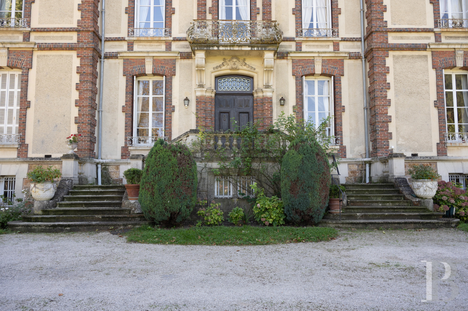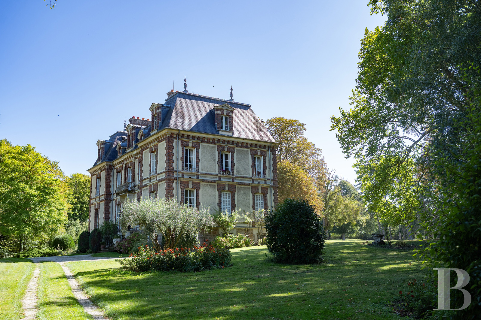 Built during the second half of the 19th century, the chateau features a rectangular floor plan of approximately 450 m² and three storeys, one of which is located under the eaves, as well as a slate Mansard roof cadenced by dormer windows, while its orderly exterior stands out thanks to its light-colour plaster-coated walls, which alternate with its red brick window surrounds.