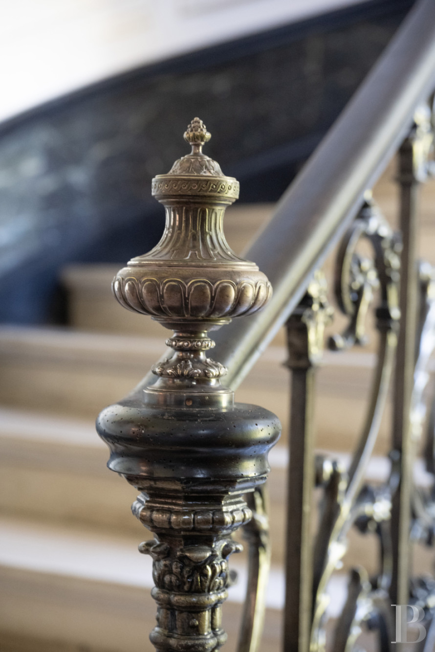 Completely symmetrical and divided into five vertical rows of tall windows, punctuated by prominent quoins on the building’s four corners, the central building is framed by two understated side wings, whereas its front door, accessible via a double staircase, is topped with a stern mascaron as well as a balcony with an ornate Louis XV wrought-iron guardrail. Thanks to the equilibrium of its details, the symmetry of its proportions and the unostentatious breadth of its décor, this dwelling is emblematic of the architectural elegance of the era in which it was constructed.