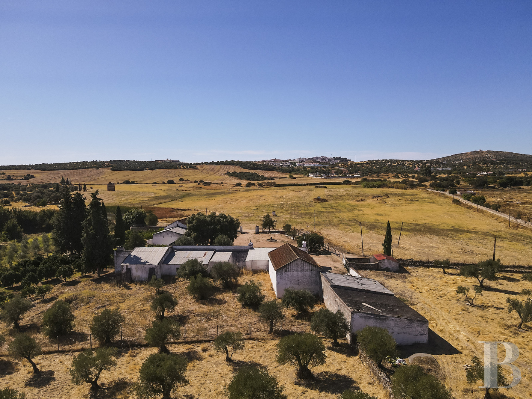 On the edge of the Alentejo region, where the Guadiana River marks the border with Spain, a 93-hectare estate stretches across forests, pastures and olive groves. Classified as a Tourist Hunting Zone, the fully enclosed estate includes a 19th-century fortified farmhouse, a watchtower, a lake and eight farm buildings spread around a large courtyard. The buildings, which total nearly 1,200 square metres, are in need of gradual restoration. The holm oaks, pines and cork oaks planted in the 2010s make up 48 hectares of forest, while the lowlands, irrigated by six wells and a nearby canal, are suitable for crops or livestock. The classification as a silvo-pastoral zone allows for new projects. A few kilometres from Elvas, a fortified town listed as a World Heritage Site, and the Alqueva dam, the location is ideal for those looking for an agricultural estate or a tourism project in the Portuguese hinterland.