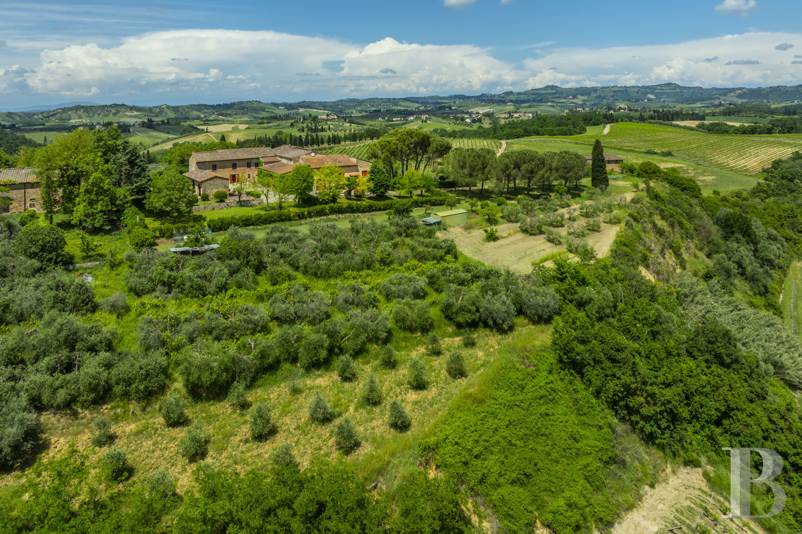 Certaldo's vineyards stretch across gently rolling hills in this agricultural part of Tuscany, where the landscape still has to be earned. A 20-hectare estate occupies these slopes, accompanied by rural buildings whose simplicity speaks volumes: built to produce, lived in to cultivate. Several outbuildings await restoration, which could serve as either a wine tourism project or an extended family home. The proximity of Certaldo, the medieval village where Boccaccio lived, places the property in a living territory steeped in centuries of literary and wine-growing history. Neither turned into a museum nor transformed into a backdrop, the estate retains its primary vocation while opening up to other uses. A property that speaks of transmission, know-how and deep roots, far from the conventional Tuscan fantasies.