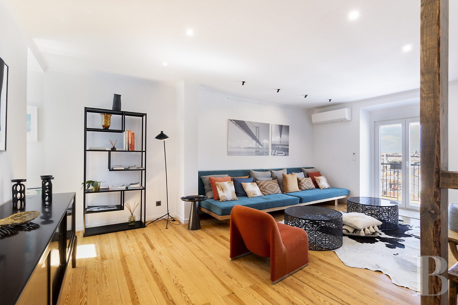 a five-bedroom duplex on the top floors of a renovated building facing the Tagus River