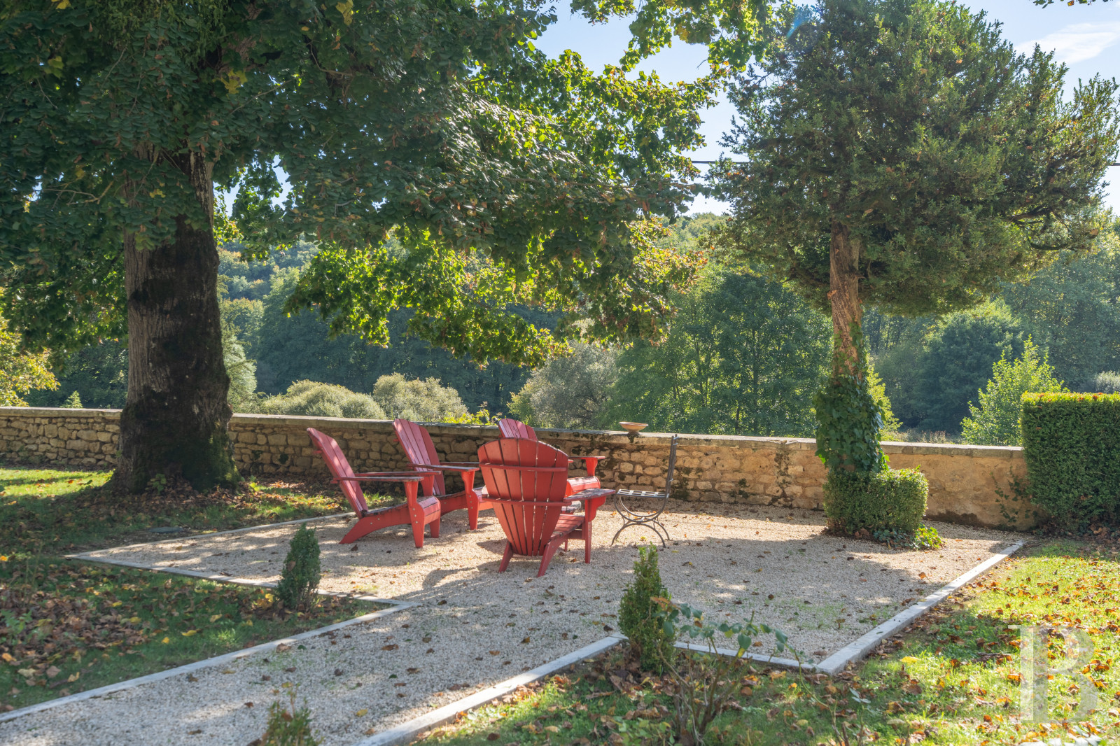 Between the house and the garages, a pond, into which a stream flows, was created in the 18th century. The garden extends to the rear and below the house, with a swimming pool at the same height as the main residence and second entrance.