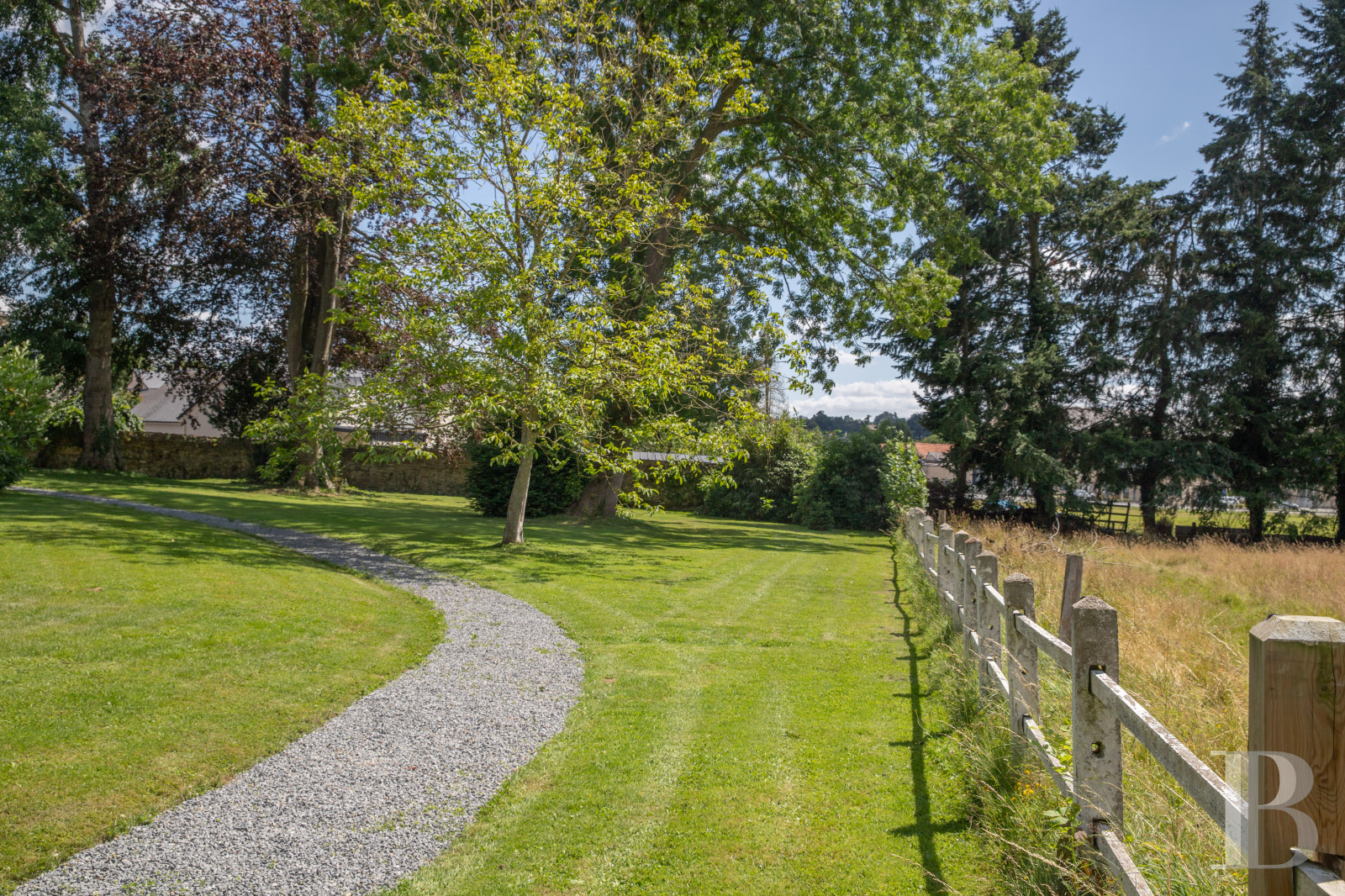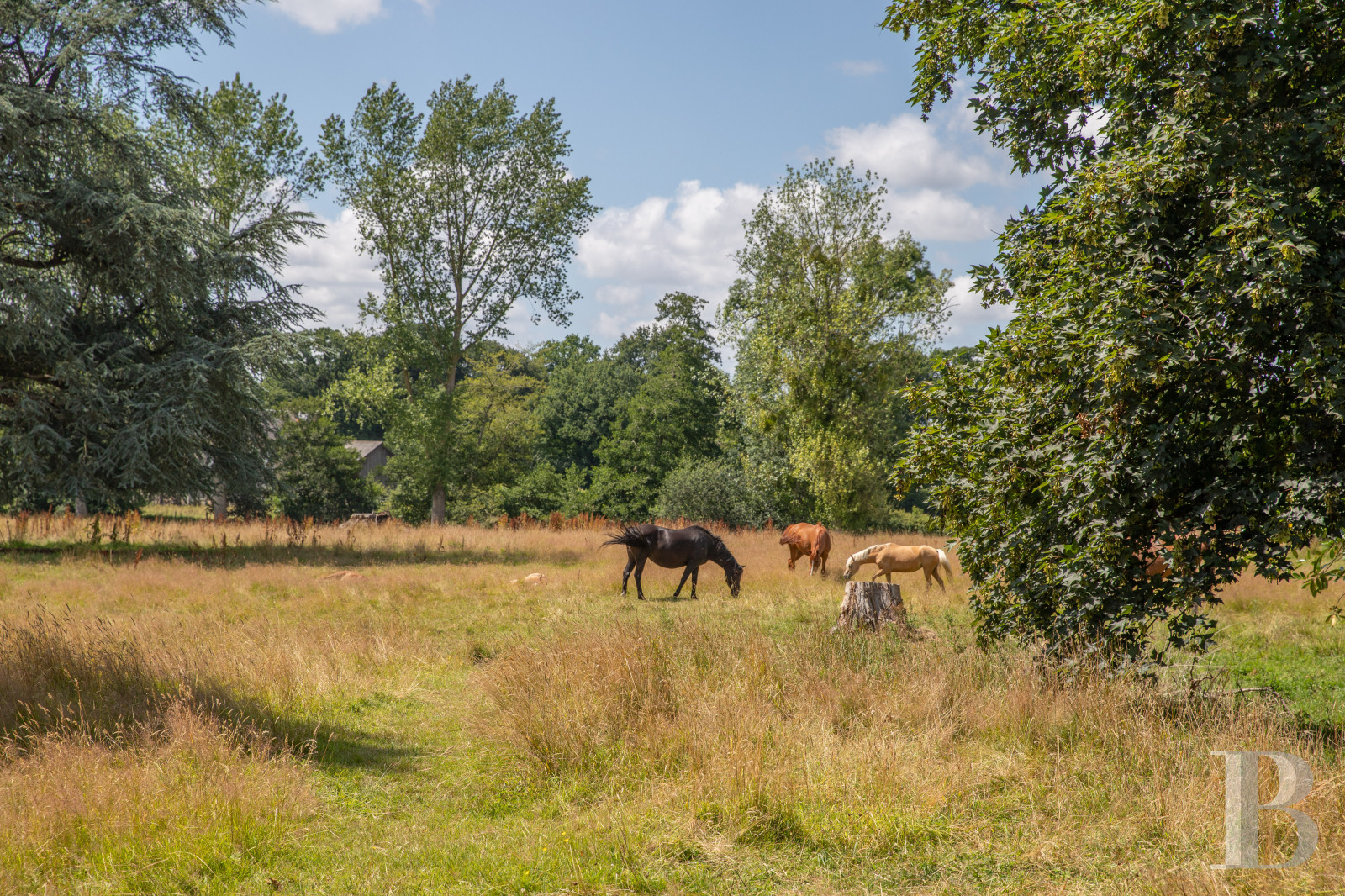 The grounds are oriented towards the south and their 6,000-m² surface stretches around the manor. The original landscaping has been scrupulously respected and well-maintained. The grounds are punctuated by winding gravelled paths, which are an invitation to a stroll through the lawns and flower beds reminiscent of an English garden. They extend beyond a horse fence into a vast meadow overlooking the surrounding countryside up to the horizon. Coppices of trees and clumps of shrubs provide an ornamental touch. Vibrant and flowering bay, hydrangeas and rhododendrons occupy the views and create spaces of greenery, while many tall trees, some of which are remarkable, punctuate the space, such as ginkgo bilobas, sequoias or beech.