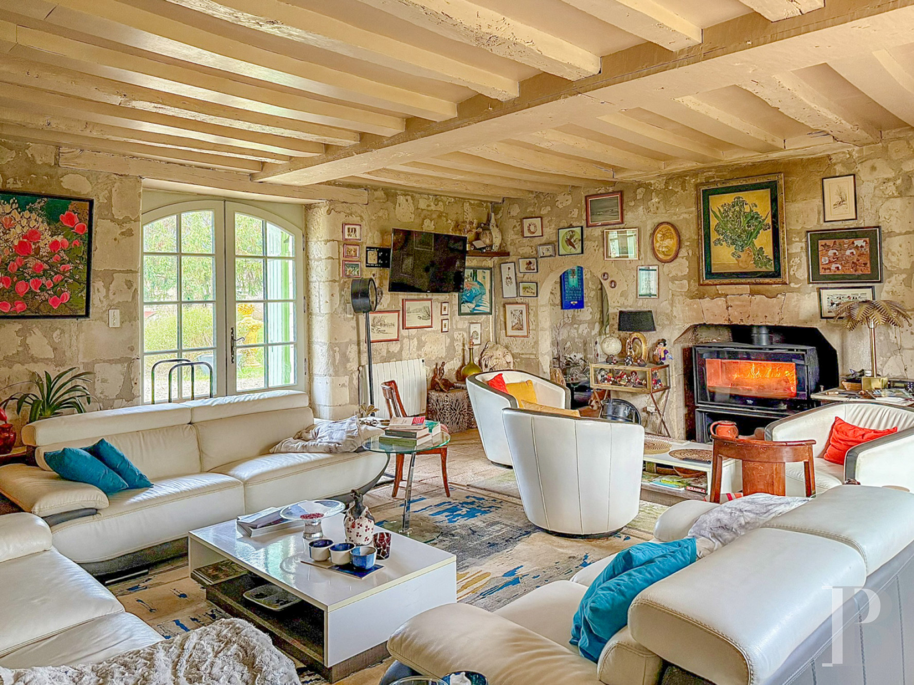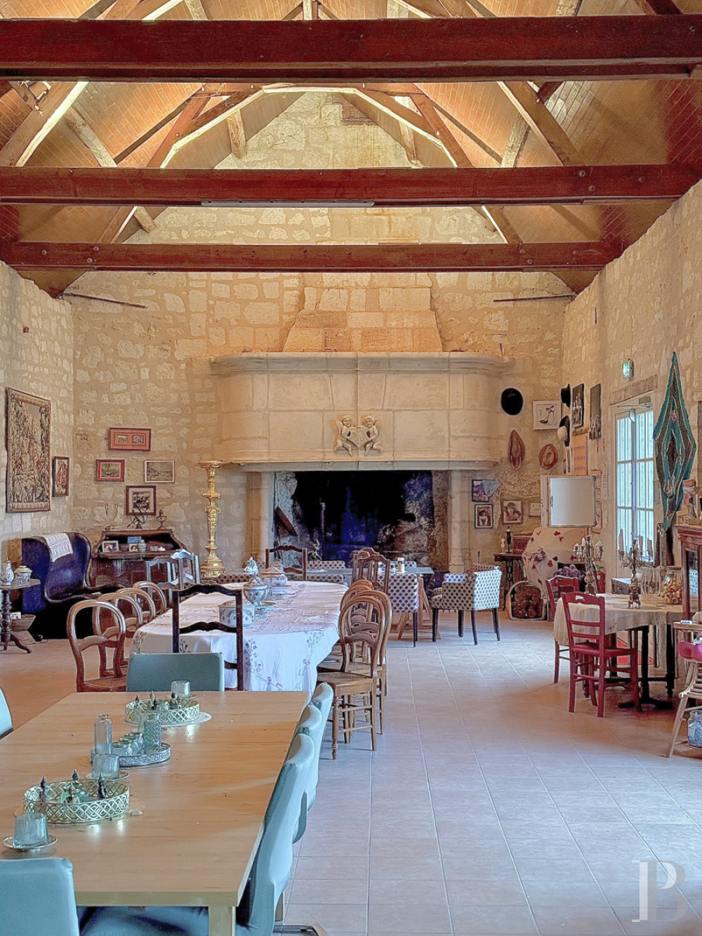 Accessible from the property as well as a separate and secure entrance, which opens on to a car park, it is located in a renovated former barn. With over 150 m² of floor area and nearly seven metres up to the roof ridge, it features tiled floors, pointed stone walls, wood-panelled timber framing as well as a giant fireplace, while a professional kitchen, a coatroom and a lavatory can also be found within this space dedicated to events.