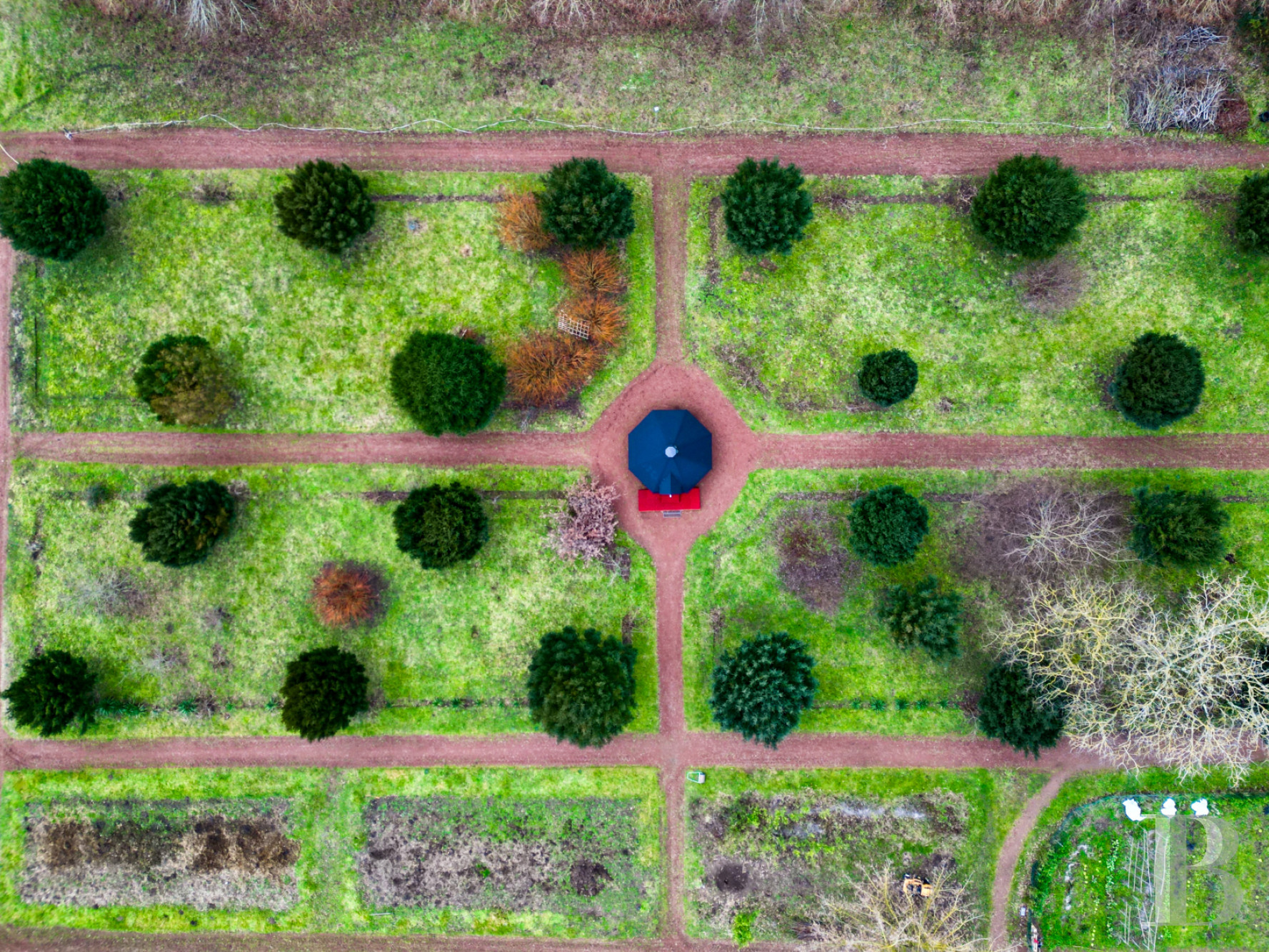 Extending to the north, west and south, over more than four hectares, the grounds include, to the north, a pond of approximately 1,900 m², which is located next to a young orchard, planted with apples, pears, peaches, apricots and walnuts. As for the yew garden, landscaped with a typically formal French structure, it is located to the southwest, with a Finnish kota at its centre, whereas a vegetable garden can be found on the grounds’ northeast end. Featuring a tennis court and planted with limes, cedars, white and red horse-chestnuts as well as a sequoia, the grounds also include water-filled moats, which create a natural transition between the property’s different spaces, while three wells are also scattered throughout the estate.