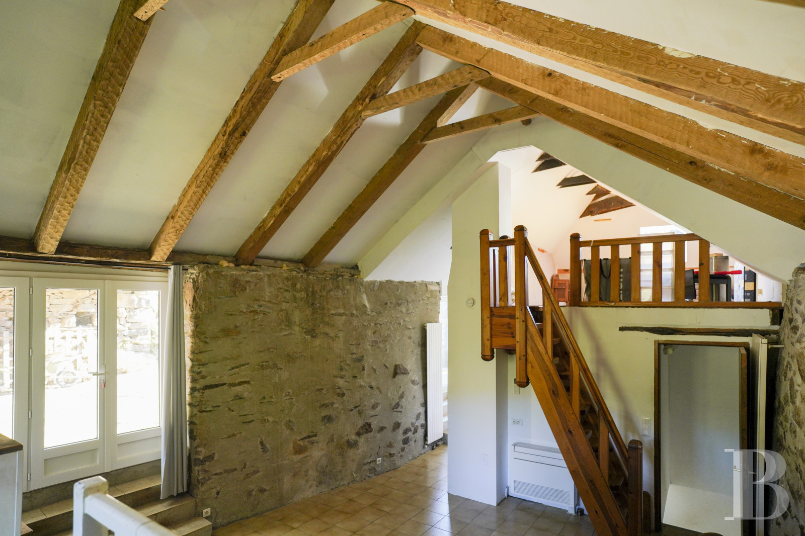 Made up of a courtyard off the upper part of the farm building, a small garden to the east, a grassy patio to the south and a sloping plot of land to the west, below, a stream winds its way between trees, bordered by the vestiges of a former mill, while, the whole, a blank slate to be fashioned according to its future owners’ tastes, could be turned into a landscaped garden or a haven for a number of different animals.