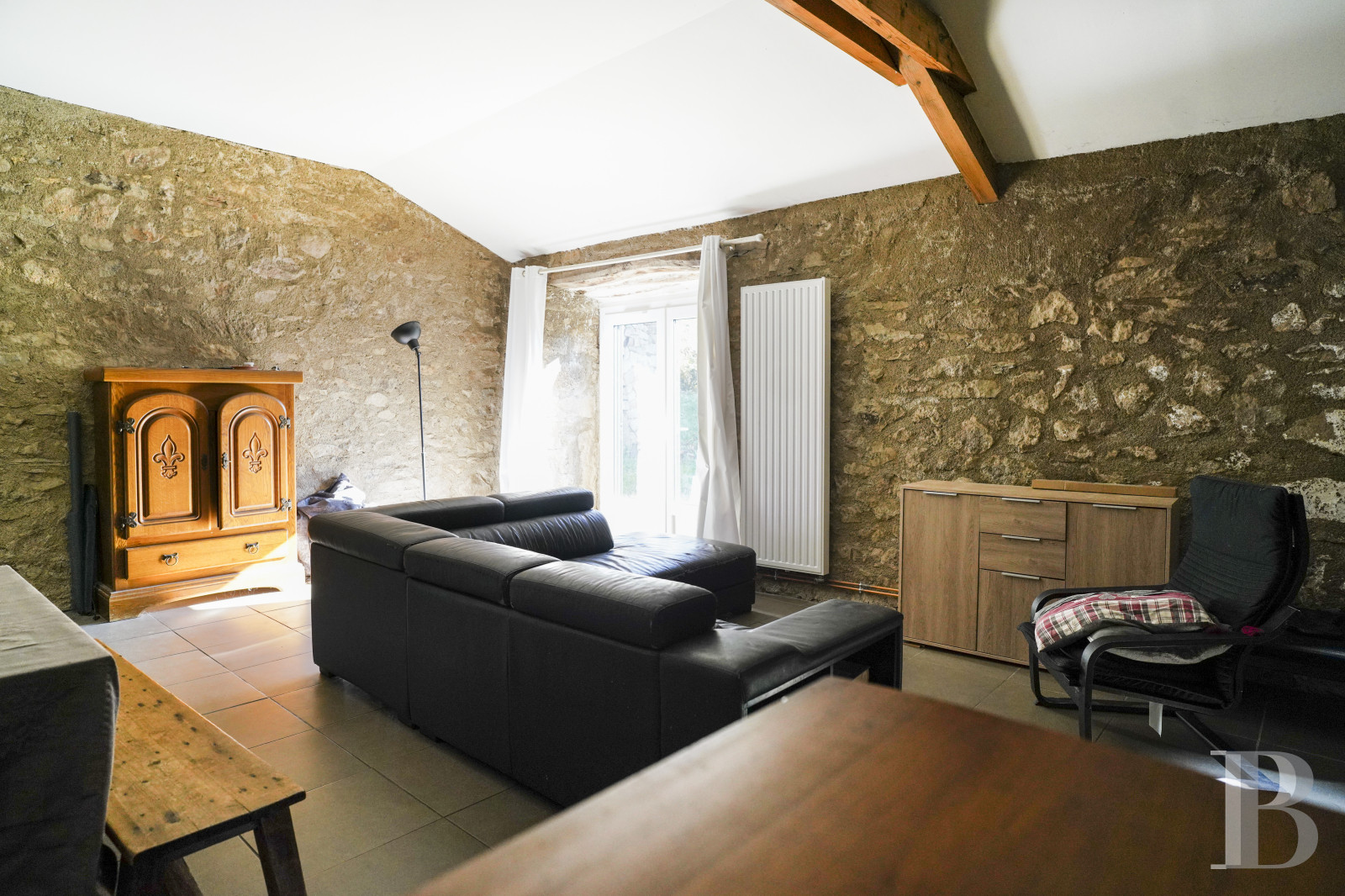 At the entrance to the property, an initial outbuilding, of approximately 30 m² and once meant for storing hay, has been left intact with its wooden flooring and façade, as well as a roof that will need to be repaired. Underneath, a covered courtyard could be used as a woodshed or an outdoor workshop, while a small independent bedroom could also be easily created here. In addition, behind the farm building, a former chestnut dryer of approximately 20 m² – typical of the region – has remained unchanged since its inception.