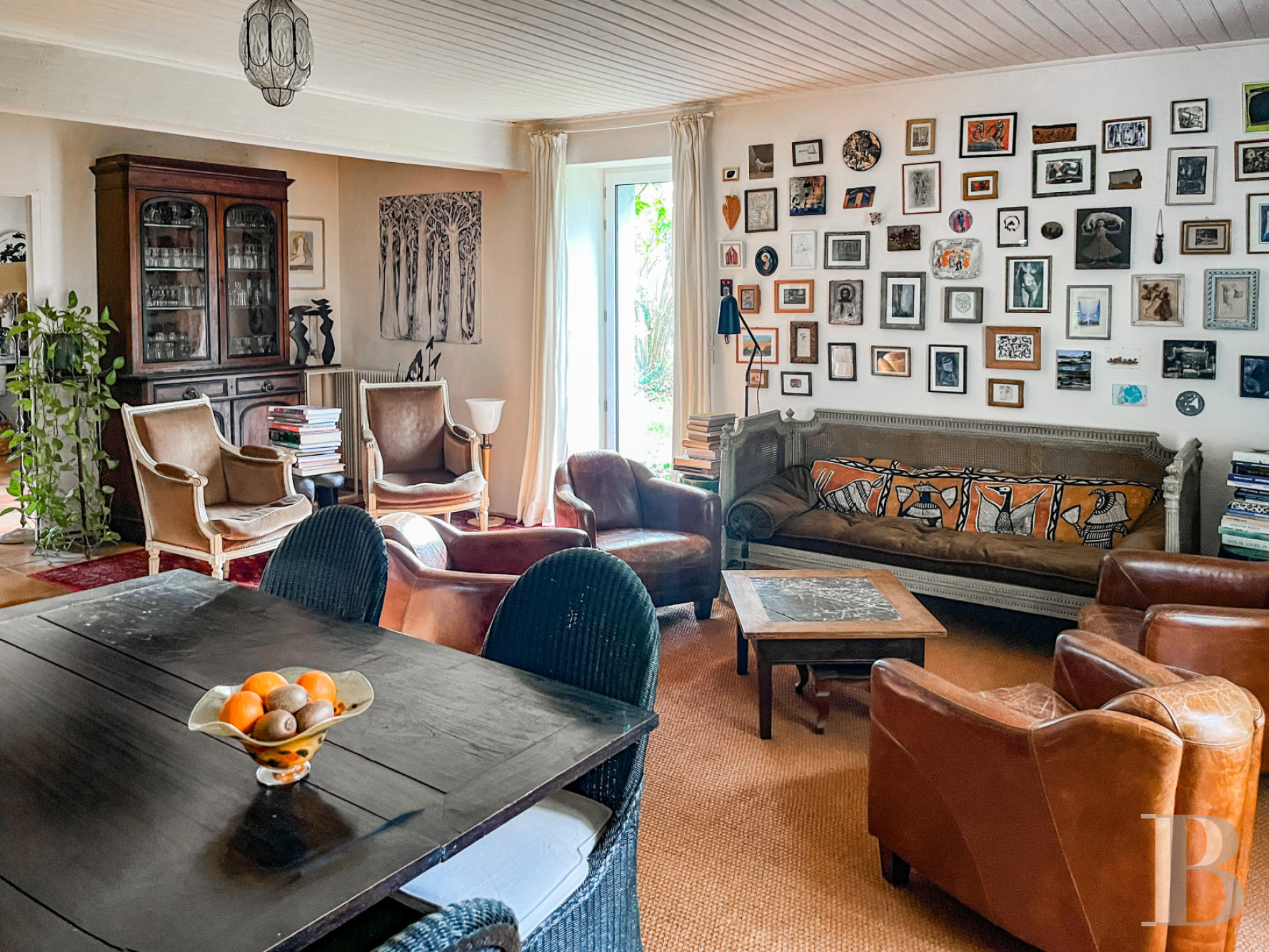 Nestled within the bucolic Vienne department, and surrounded by tall trees and hedges, this renovated farm has been transformed into a breath-taking artists’ residence. As for the property, with its immense outbuildings, it contains sizeable accommodations, as well as spaces dedicated to both creativity and exhibits, and could either remain a sanctuary for artists or welcome a family in search of a home surrounded by the great outdoors.