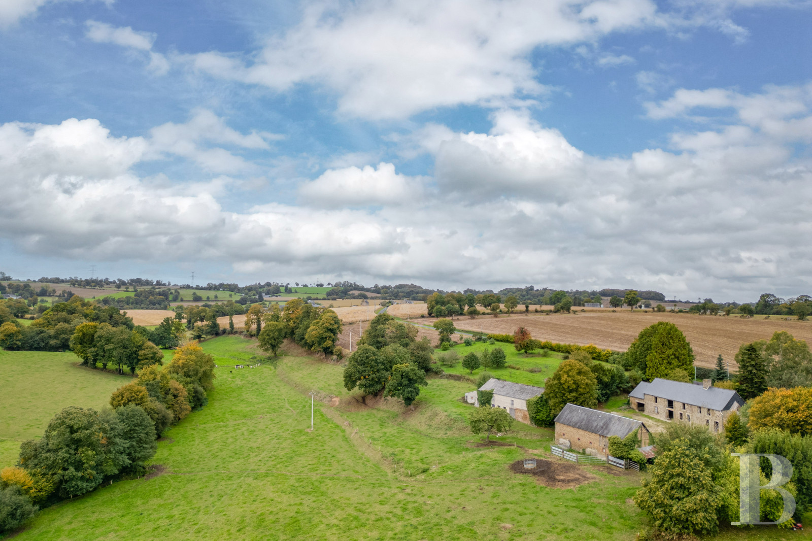 This property is located in Normandy, in the Manche area, in a peaceful hamlet belonging to the rural municipality of Teilleul. It is surrounded by the undulating wooded countryside of the Mortainais sector, punctuated with hedges, woods and meadows through which flow streams. The municipality came into being following a merger of several villages. It brings together convenience stores as well as essential everyday services and boasts a thriving agricultural fabric. Mortain and Saint-Hilaire-du-Harcouët are 15 minutes away, Mon Saint Michel can be reached in 1 hour, as can the station in Laval, from where trains put Paris within 1 hour 30 minutes’ reach. Caen, Rennes and both their airports are also 1 hour 30 minutes away.