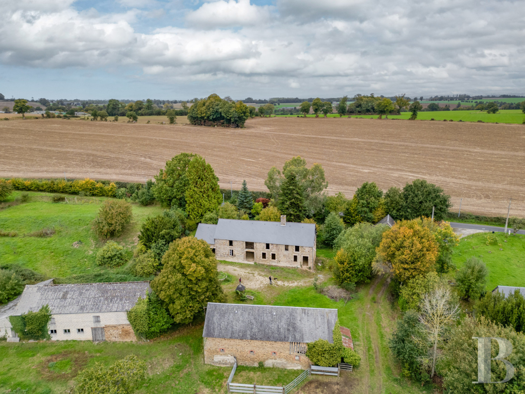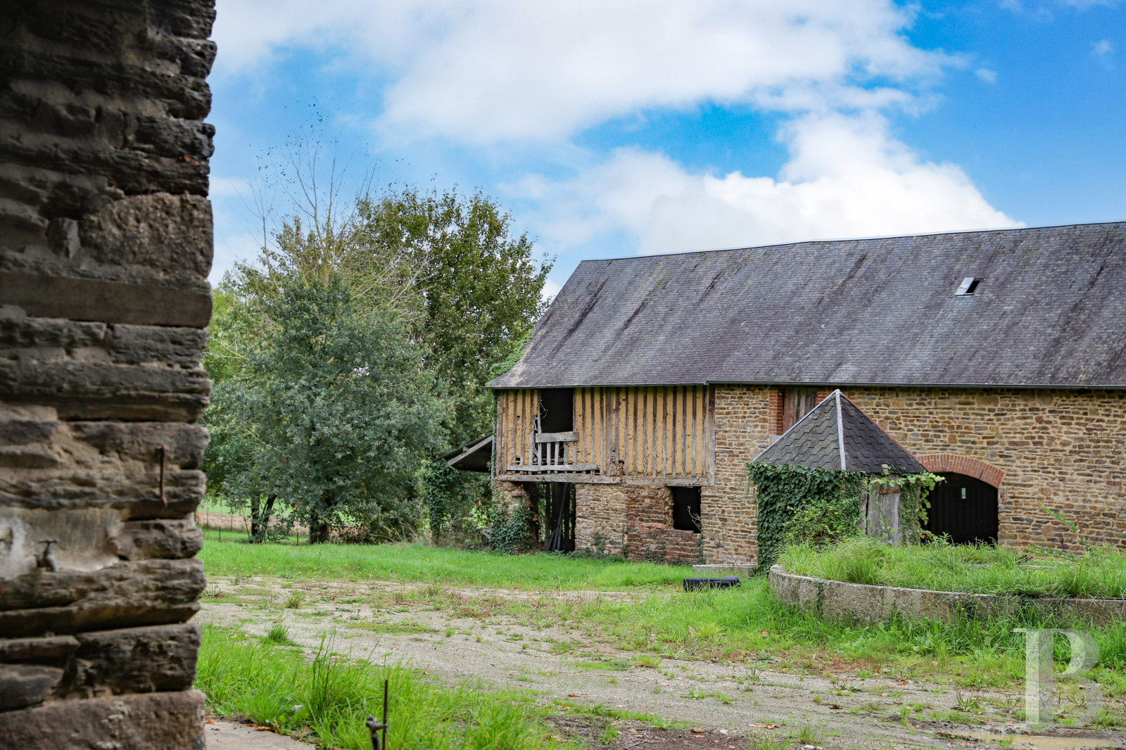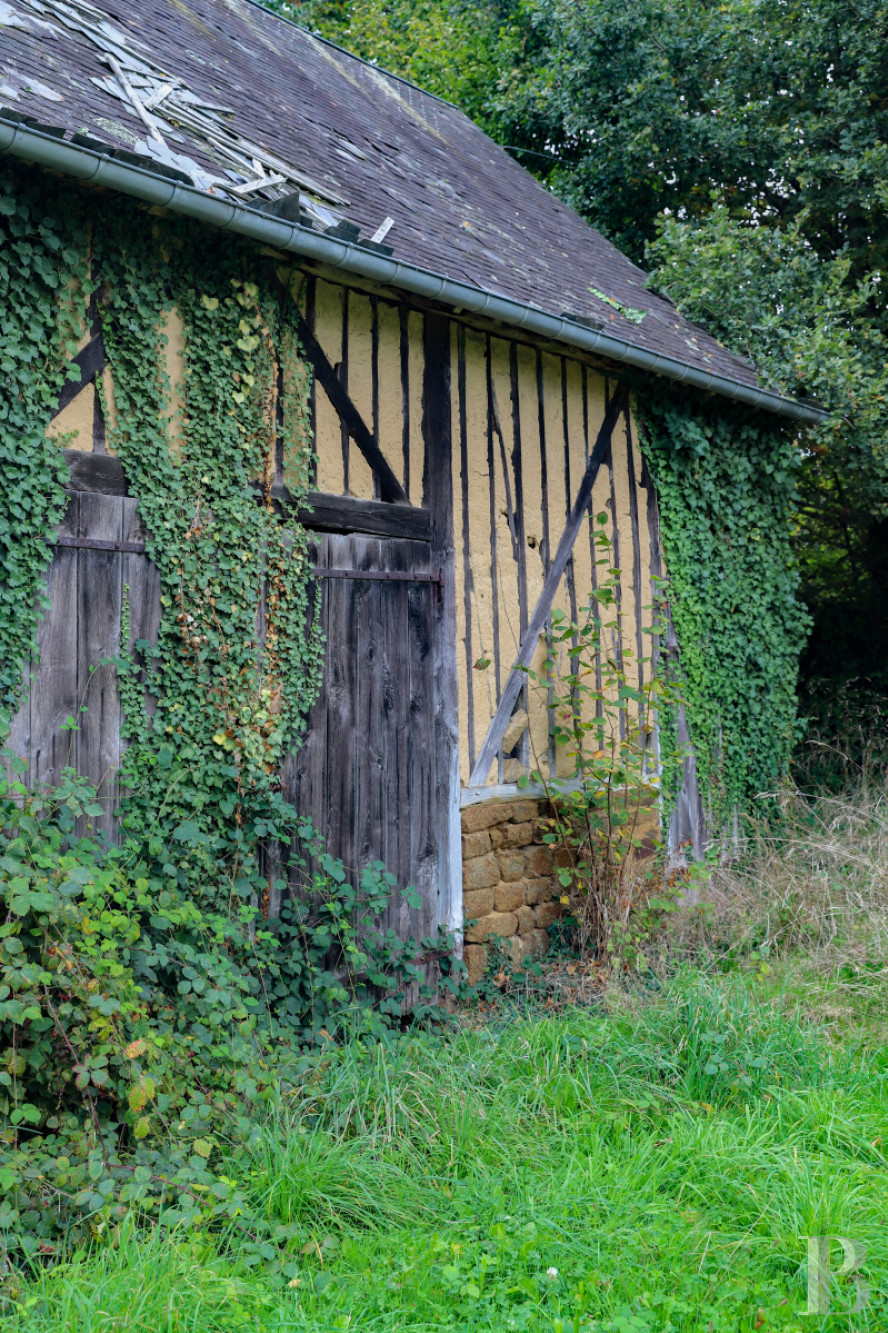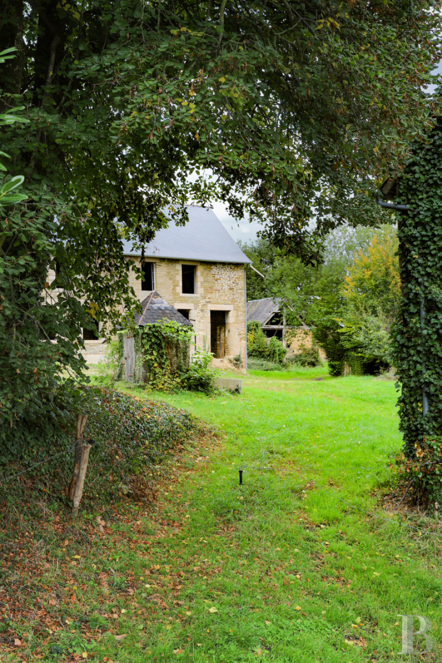 This authentic 17th-century farmhouse under renovation stands in the wooded countryside of Normandy, 1 hour from Mont Saint Michel. Its stone elevations and slate roofs are in a fine condition, with many period architectural features in the oldest buildings. The main residence is of imposing size and offers many possibilities: a family home, a holiday cottage full of character or a base for the revival of farming activity. The estate’s land, through which a stream flows, and the outbuildings paint a pastoral picture of a particularly promising property.