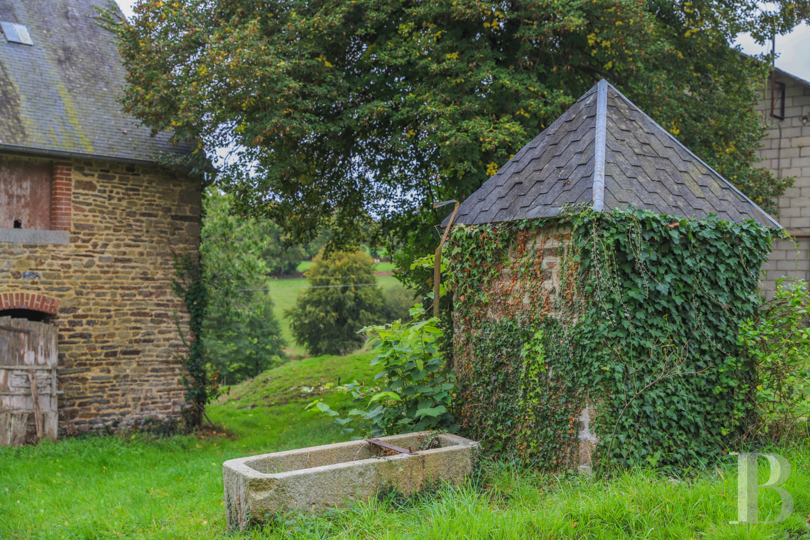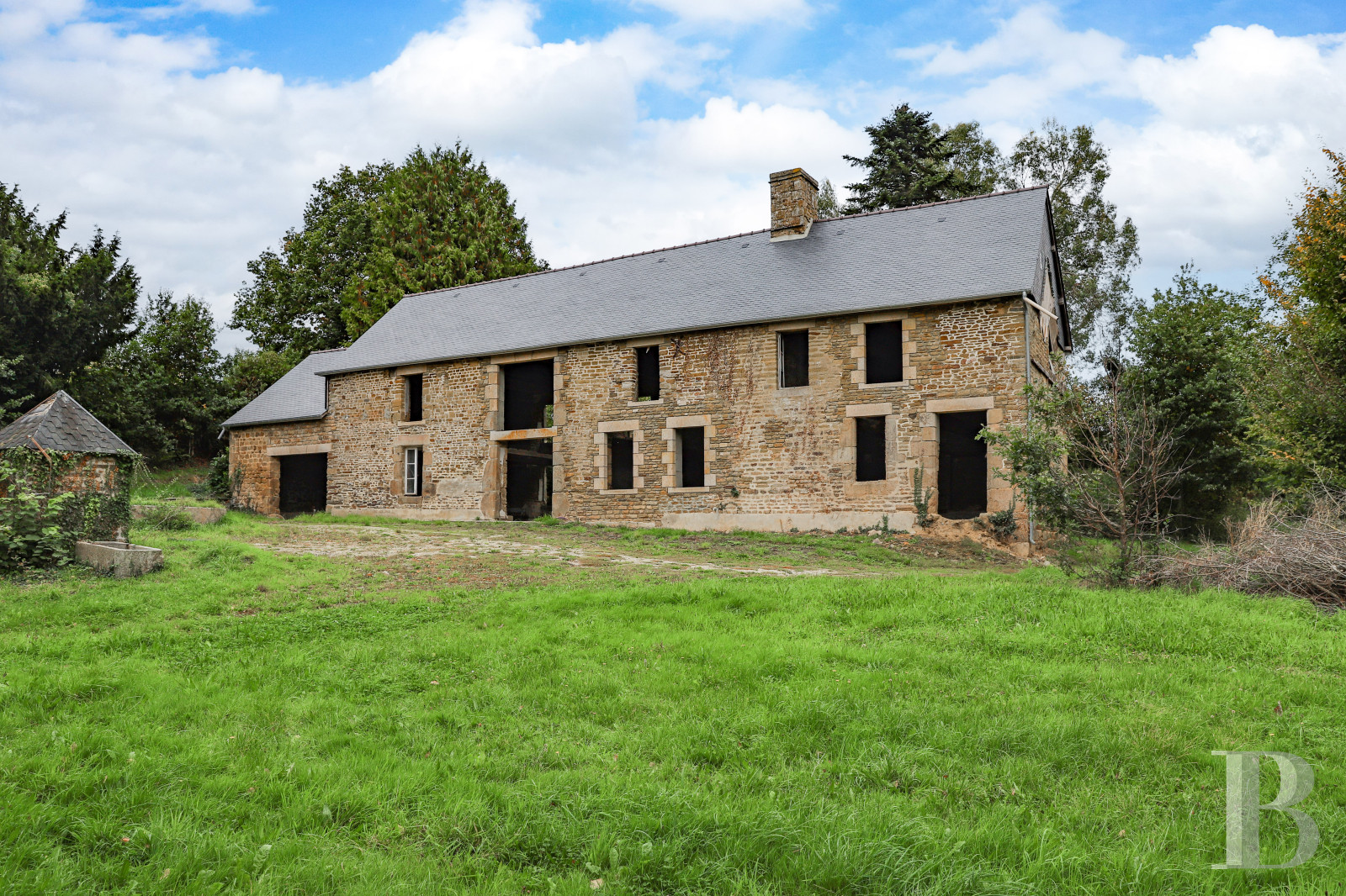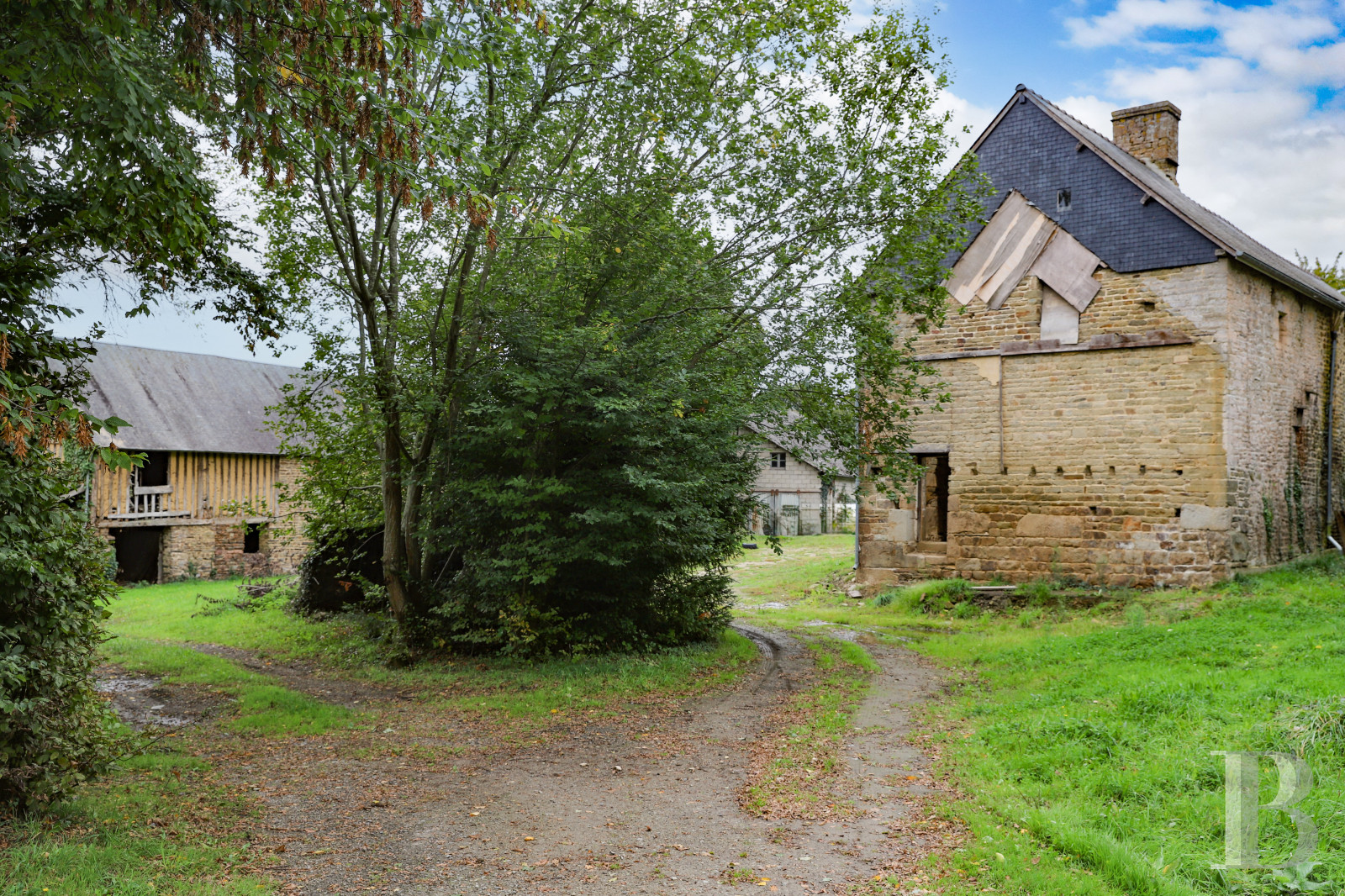 This authentic 17th-century farmhouse under renovation stands in the wooded countryside of Normandy, 1 hour from Mont Saint Michel. Its stone elevations and slate roofs are in a fine condition, with many period architectural features in the oldest buildings. The main residence is of imposing size and offers many possibilities: a family home, a holiday cottage full of character or a base for the revival of farming activity. The estate’s land, through which a stream flows, and the outbuildings paint a pastoral picture of a particularly promising property.