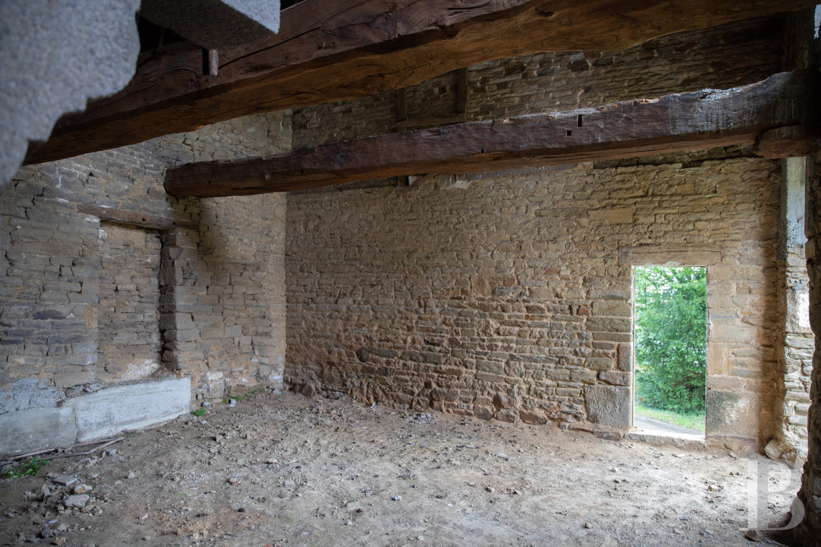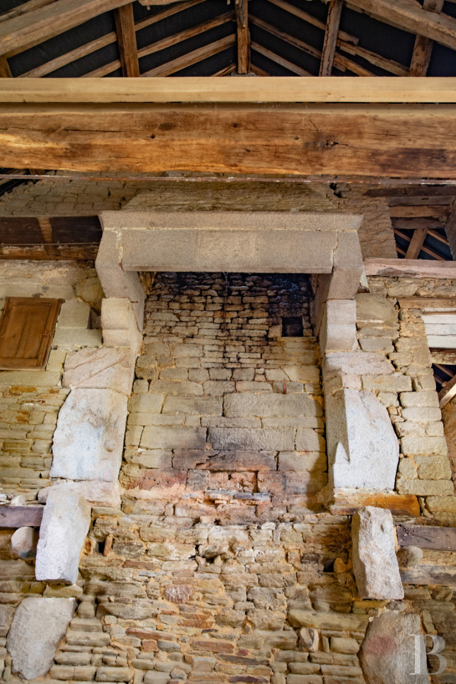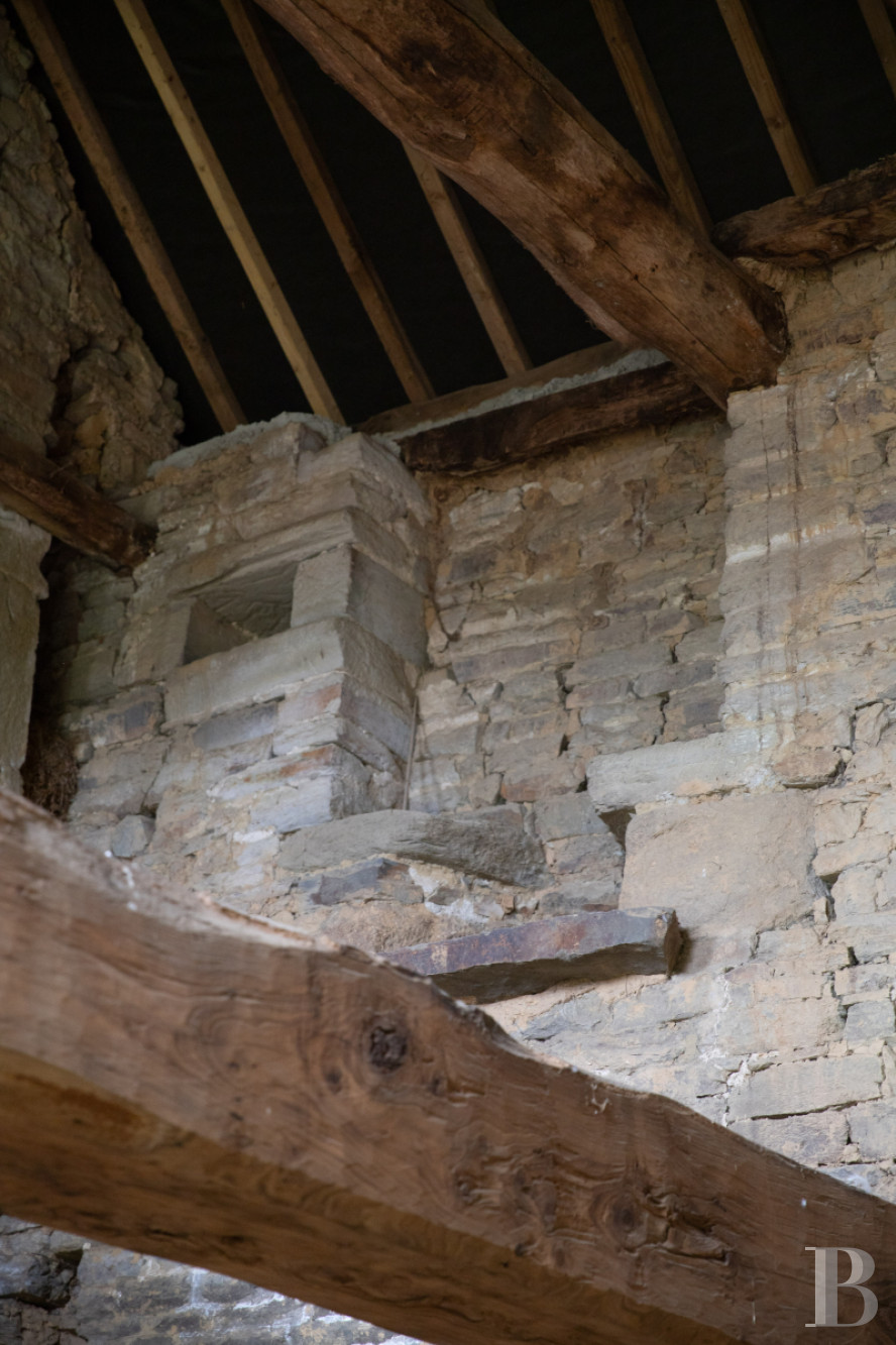 The renovation work is in need of completion. The building has two storeys, plus an attic level. The masonry is of good quality and the edifice possesses two tall fireplaces boasting imposing corbels as well as a hood underlined by a cornice. A number of built-in wall cupboards typical of traditional architecture are still visible, as well as a blocked opening with window seating. Several massive beams are still in place, awaiting the installation of joists.