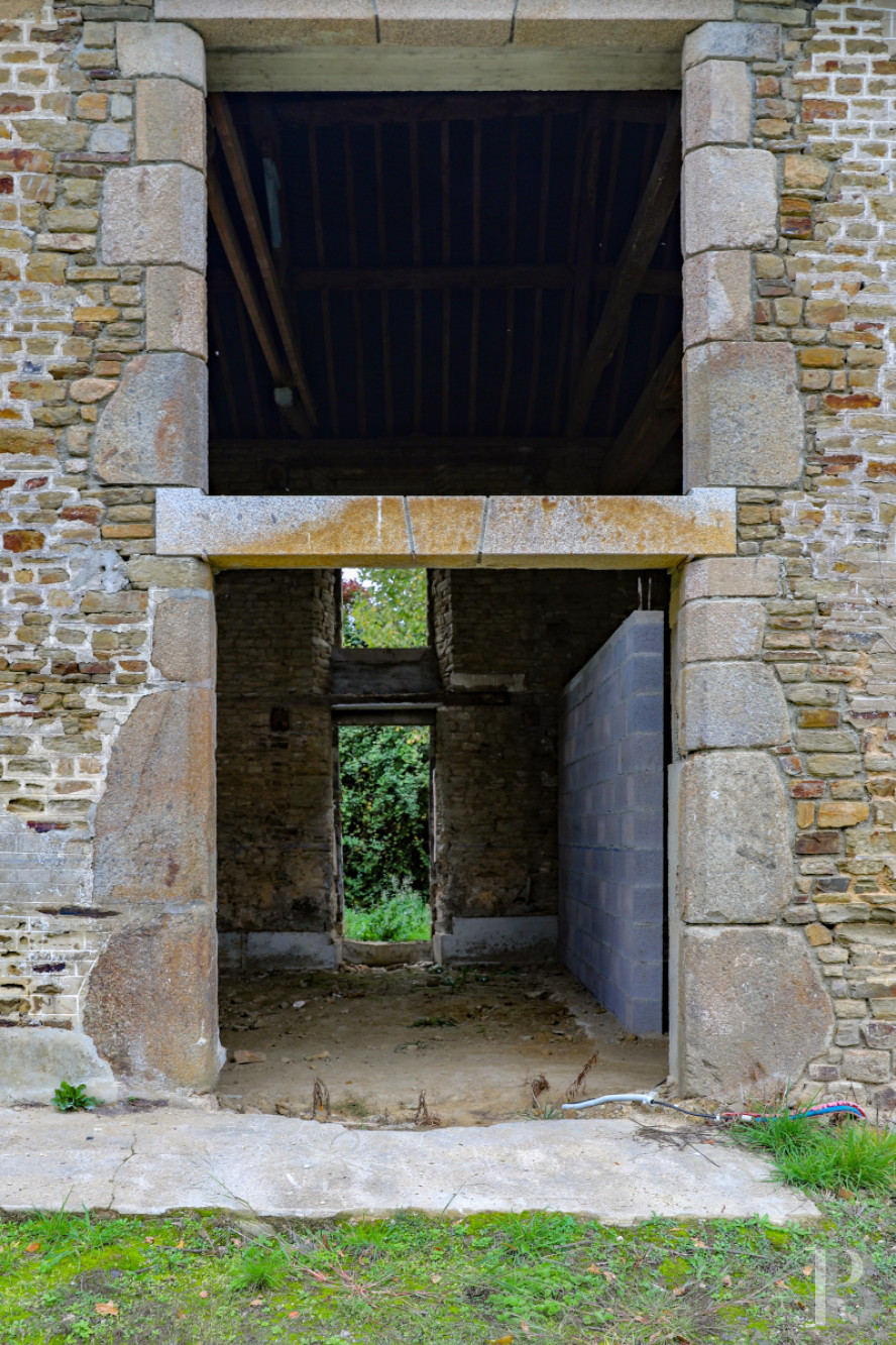 It stands opposite the residence to the south of the courtyard and has a regular, symmetrical façade. A vast barn door with a slightly arched lintel in brick is framed by two small doors with identical lintels, topped by an opening that leads into the loft space. At its eastern end, there is an extension to the barn made of stone on the ground floor and half-timbering on the upper floor, next to which there is also a lean-to. The building is of fine construction quality but requires restoration work. Inside, there are still structures intended for accommodating cattle.