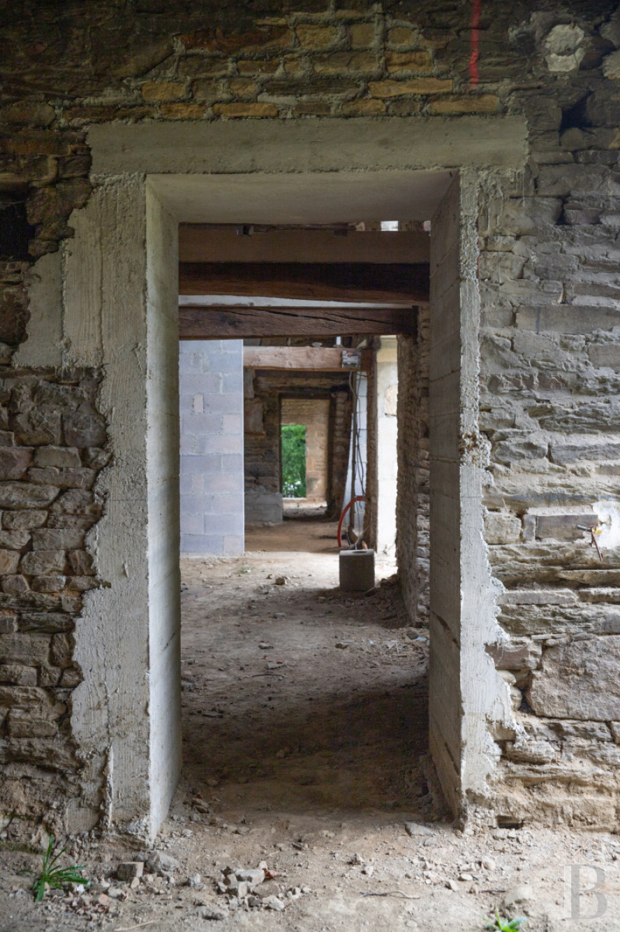 The residence’s roofs are recent and in excellent condition, underlined by roof decking. The materials used display a desire to preserve the place’s authentic character. Due to a halt in the renovation work in progress, only the masonry, roof frame and roofing have been completed so far. There are no floorboards, concrete bases, joinery or sanitation system as of yet. All the plans were drawn up by a professional.