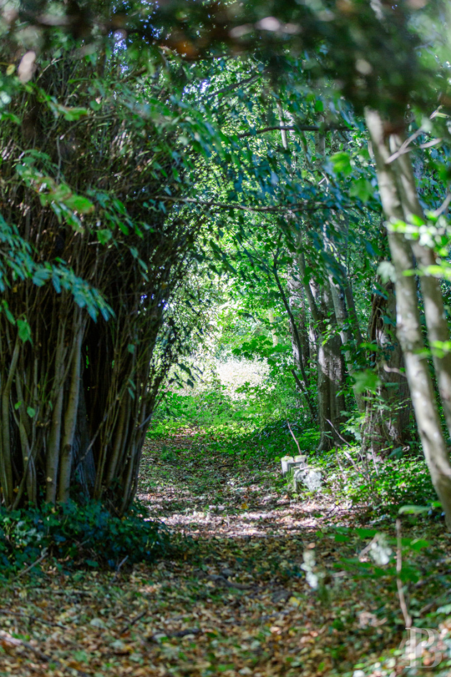 The enclosed grounds cover almost two hectares. They are home to a wealth of plants, as well as age-old trees, including a majestic sequoia. The grounds are divided into several spaces, each with their distinct atmosphere. They constantly invite you to explore them. A vast lawn has been designed as an English-style garden. Further away, paths snake through undergrowth with chestnuts, plane trees and yews. One path leads to an orchard and a former kitchen garden, enclosed with tall stone walls. An old well completes the picturesque scene.