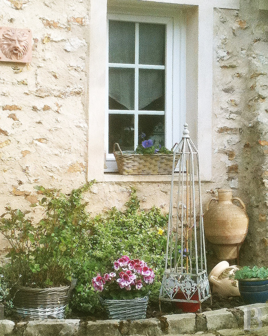 A stone wall, partly crowned with a black iron fence, encloses the garden, which covers around 140m². The garden lies in the shade of a laurel, a juniper and a small Mexican orange blossom. Rose bushes, wisteria and euonymus shrubs bloom in spring and summer.