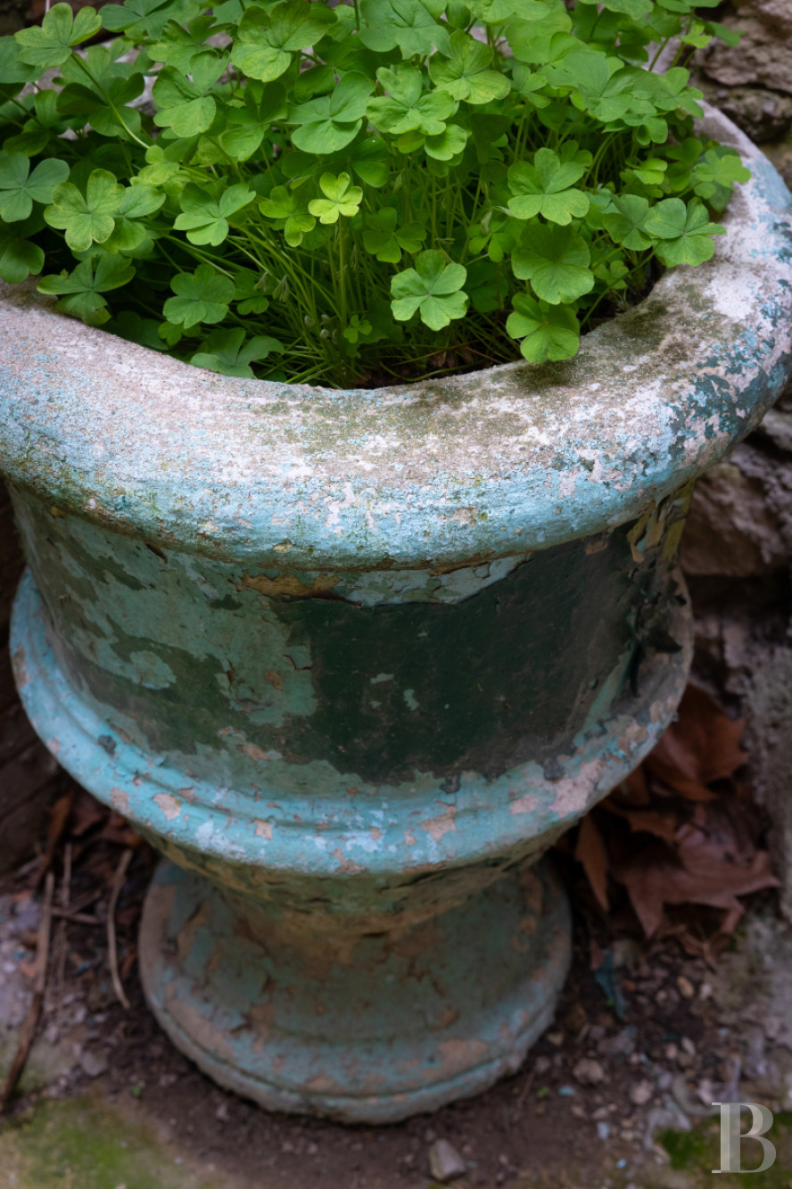 It spreads over approximately 60 m² to the north, like the terrace, and is shaded from the heat of the sun. There is a second semi-circular arch supported by columns with undecorated square capitals, faithful to the Cistercian tradition. It boasts a clearly visible keystone, which is another reminder of the abbey’s former presence, like the tower and its passageway. Three high walls surround the courtyard, one of which is partially covered with Virginia creeper. A Medici vase holding plants marks the bottom of the straight flight of steps climbing up to the raised terrace.