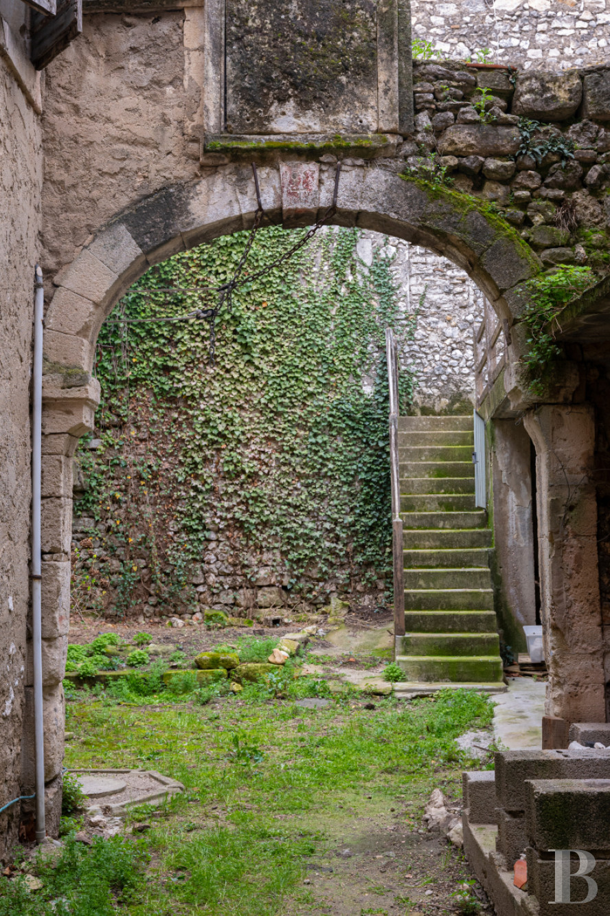 In this dynamic village, which is nevertheless protected from mass tourism, time seems to have stood still as history has passed by. The centuries have slid gently by, allowing entropy to take its slow course and feudal memories to endure. However, the windows on the top floor point to a subtle detail: their offset position is medieval but their dimensions and the discrete curve of the entablature is characteristic of a much later date than the 13th century, especially as the house is encompassed by the former abbey’s walls, which is a sign of political stability. In this edifice, the roof and level of interior comfort require upgrading while extra surface can be gained in the attic. Yet, a great freedom of restoration combined with a deep appreciation for these ancient, time-honoured buildings will be a blessing to future occupants and their aesthetic sensibilities.
