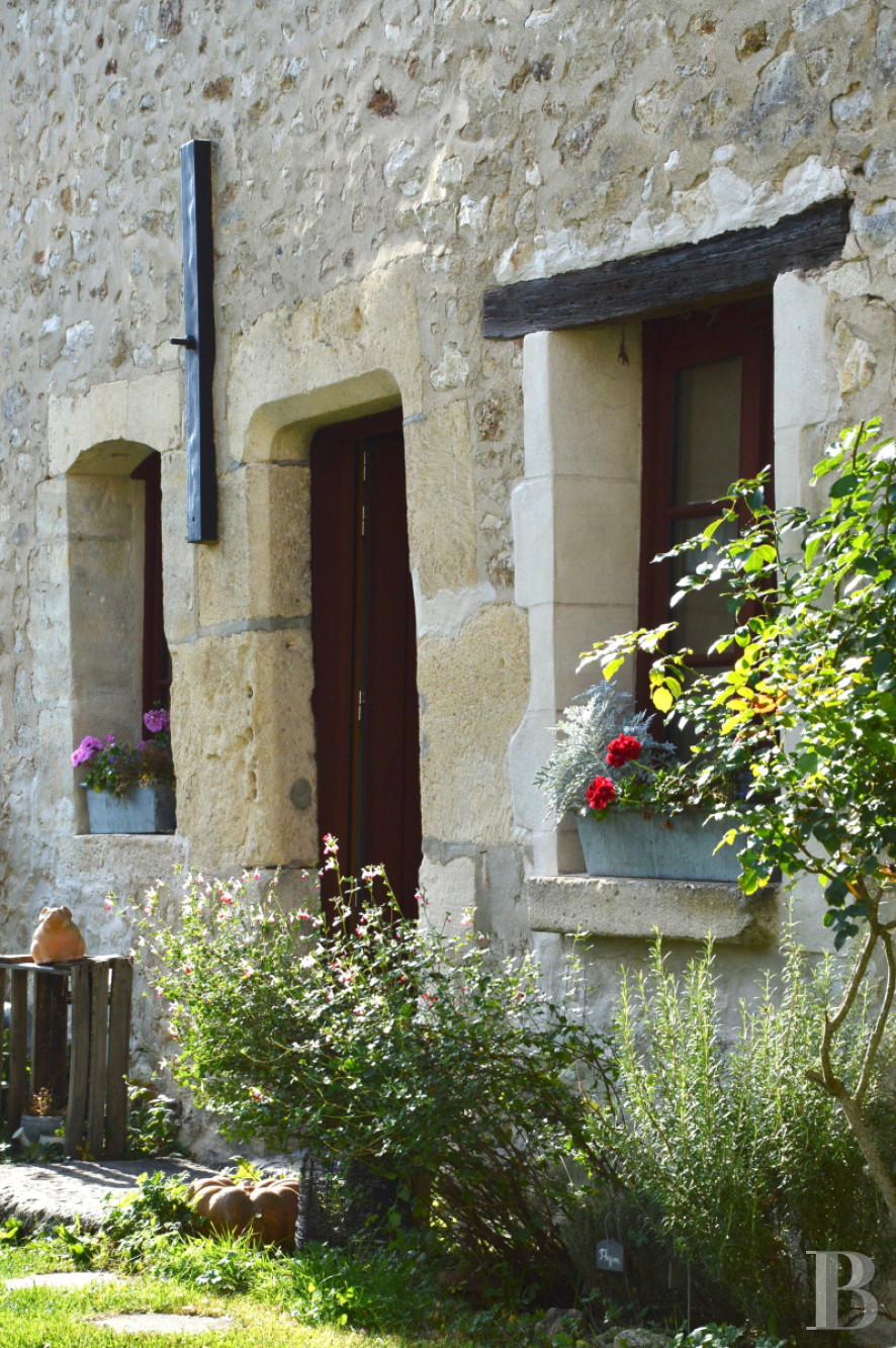 It is most likely a former farmhouse built in the 17th century, with pointed rubble stone elevations beneath a roof made of interlocking tiles punctuated with skylights. The double-glazed windows mostly have wooden frames and ashlar surrounds.