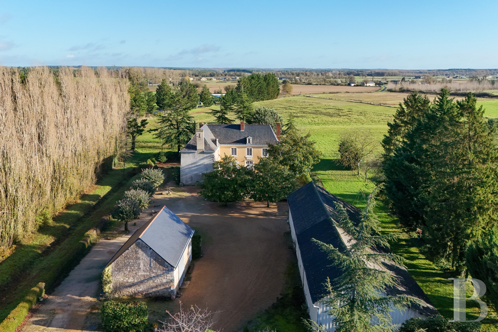 The 6.5 hectares of land includes the access lane, the courtyard, an orchard including cherry trees among other fruit trees, an around 300-m² pond and meadows. The courtyard and surroundings of the priory are lined with magnolias, white lime trees, Lombardy poplars, pine and fir trees. An officially approved landing strip has been installed in the meadows and is regularly used.