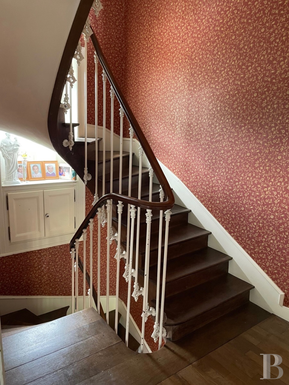 This floor includes three bedrooms, including one with a wardrobe and a shower room, as well as another bathroom and a lavatory. With straight-plank hardwood floors in the bedrooms and tile floors for the bathrooms, the level under the eaves in the dwelling’s wing is accessible via a second wooden staircase, and includes two bedrooms and a lavatory, all with hardwood floors.