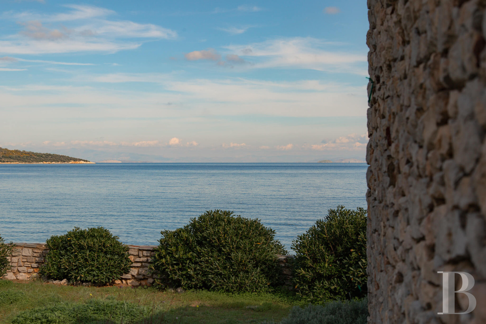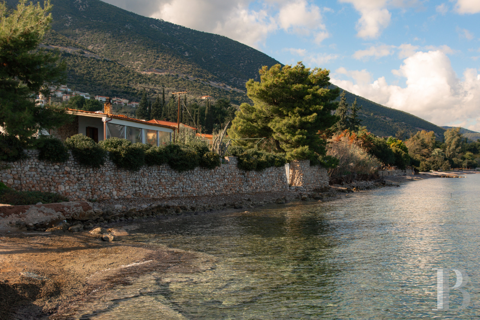e architecture balances Cycladic rusticity with vernacular simplicity. The three buildings—a 65 m² house on the waterfront and two 25 m² studios set back from the shore—offer a total of five bedrooms, three bathrooms and several living spaces waiting to be reinvented. The mature Mediterranean garden and private beach, which extend over 4,000 m², as well as the quality of the immediate maritime environment, guarantee tranquillity and are particularly conducive to relaxation and contemplation of the sea. A heritage site that has escaped intensive coastal development, it offers the opportunity to develop an extended family home or a boutique tourist accommodation business, taking advantage of direct access to the shore, available building rights and the rarity of such a seafront location. The structures connected to the networks require extensive renovation, which will give the future occupant the opportunity to continue the history of the place while respecting its authentic stone walls.
