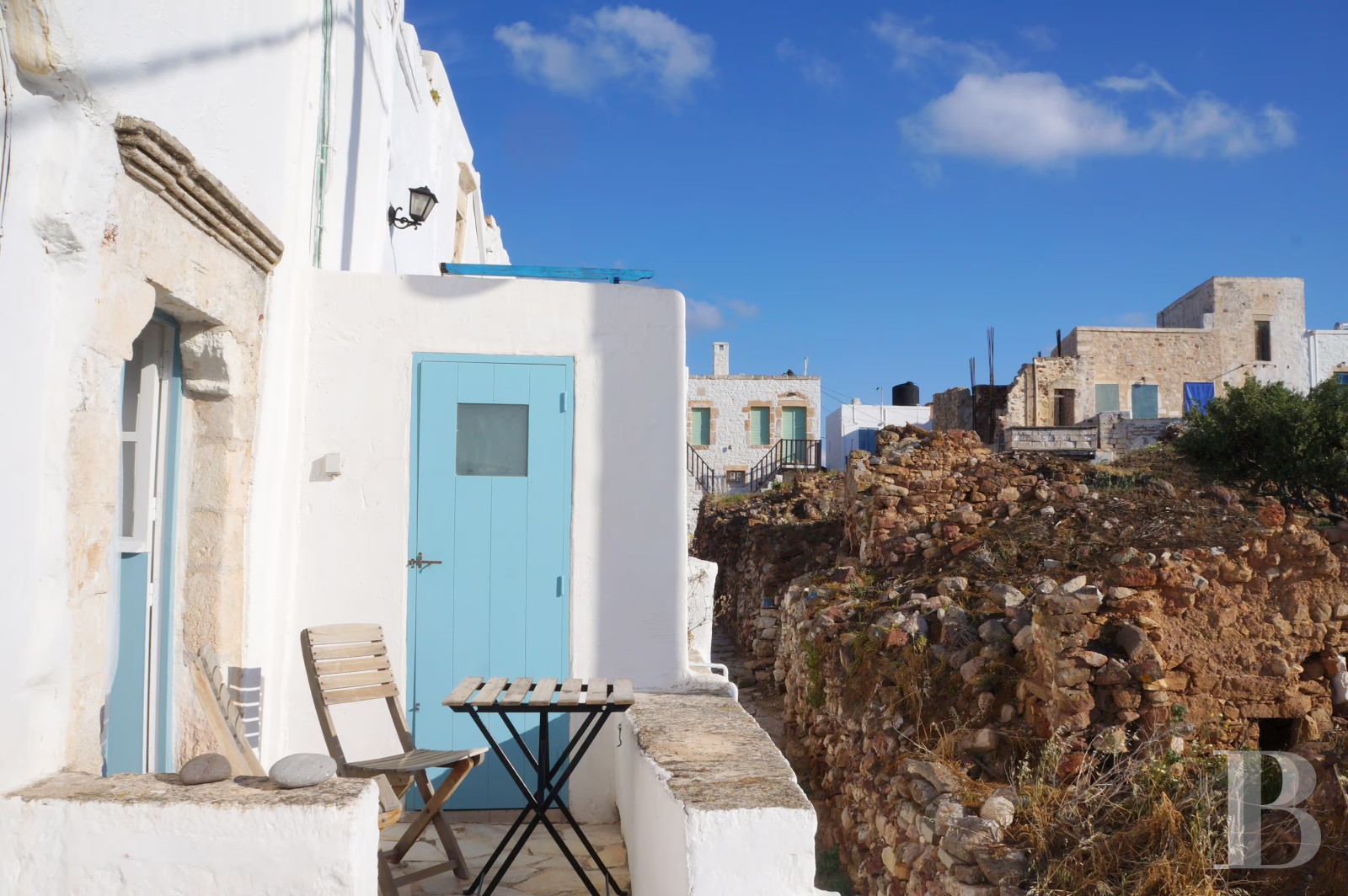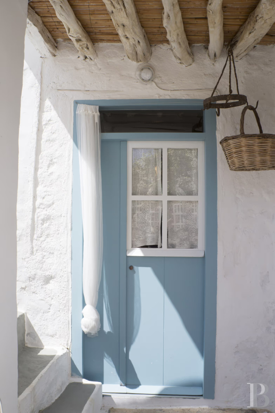 The 100 m² of whitewashed space forms a domestic sanctuary in the heart of the medieval kastro, where narrow streets and fortifications create an urban landscape that has remained unchanged for centuries. Restored in 2008 under the supervision of the Ephorate of Byzantine Antiquities, the residence has retained its vernacular features: stone fireplaces, Tinos marble basins, and an external staircase climbing up the façade. The house is ideal for those seeking to immerse themselves in Cycladic history, within a preserved medieval setting where island life is still organised according to age-old codes, between the Aegean Sea and traditional craftsmanship.