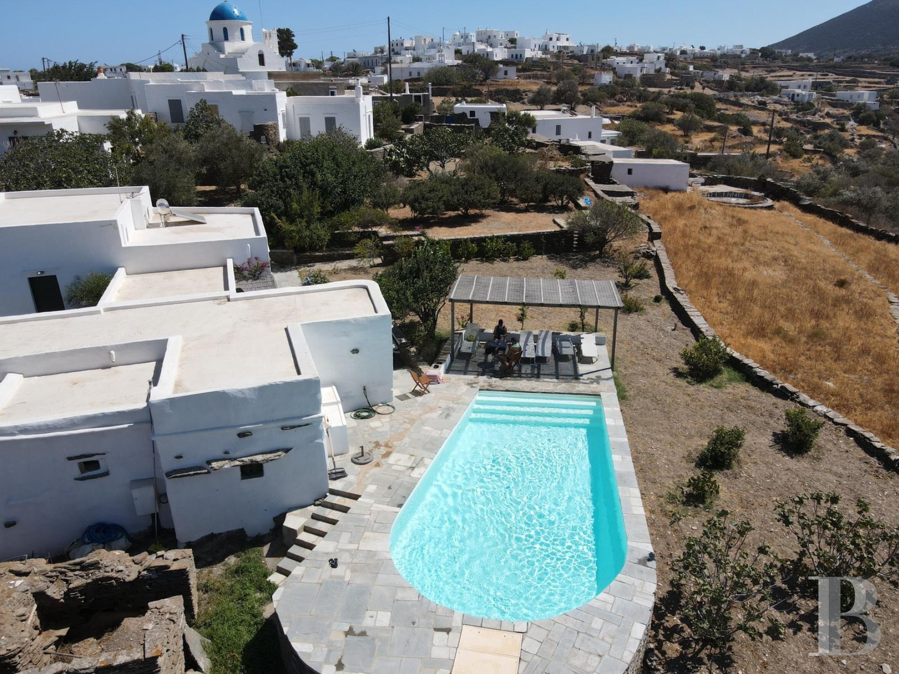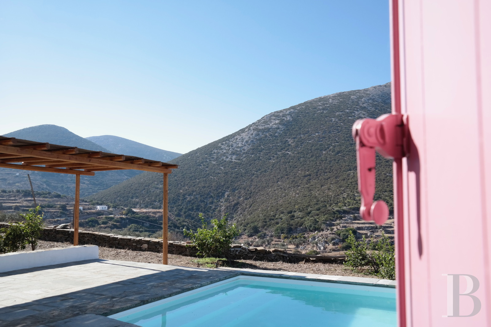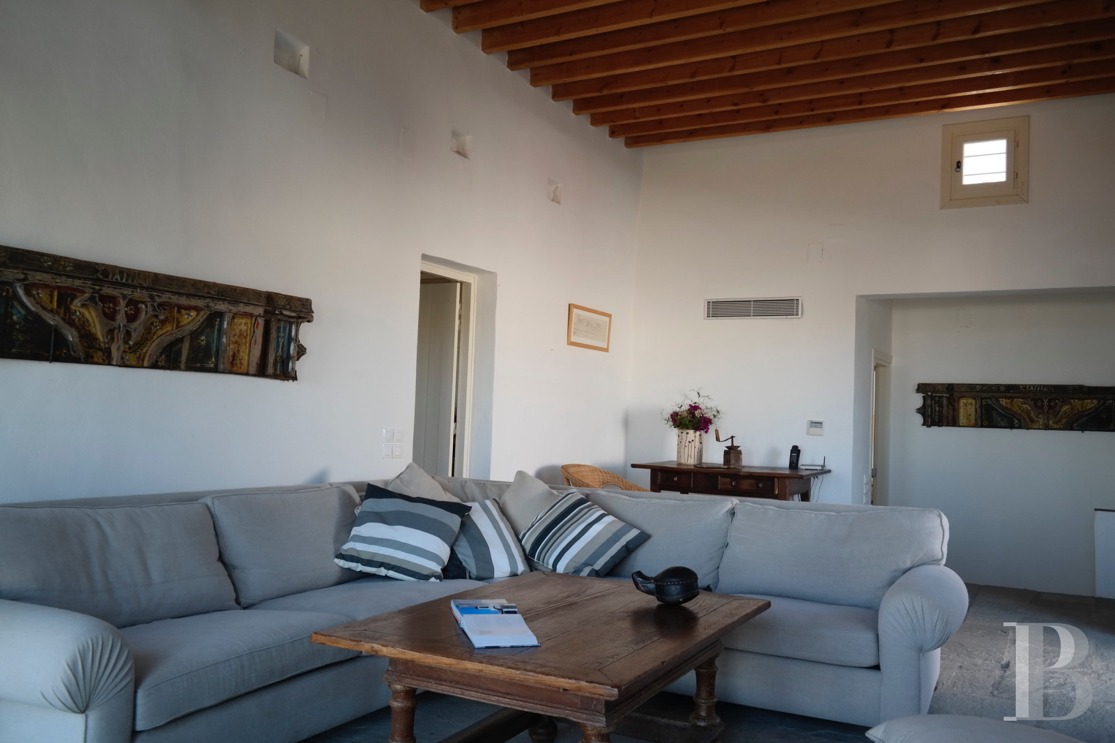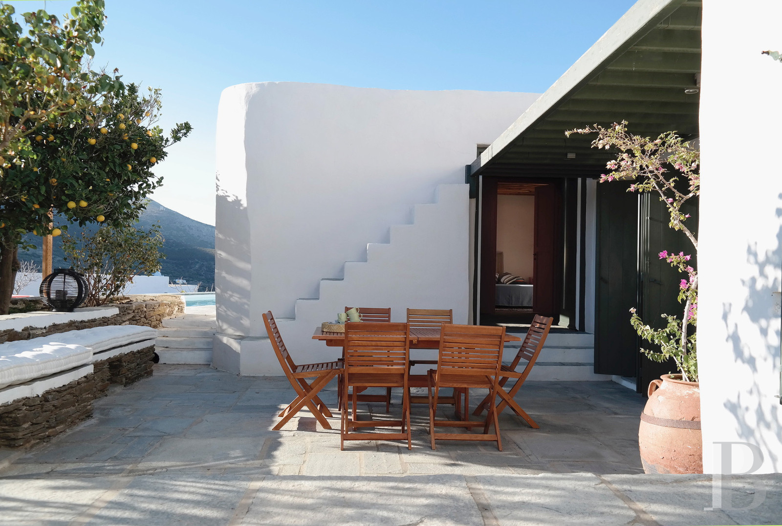 An authentic Cycladic residence, hidden away in its garden planted with fruit trees and aromatic herbs. Surrounded by island nature, the property exudes the atmosphere of an extended family retreat, just a six-minute walk from the main street. The interior offers beautiful living spaces divided between the main house with its high, light-filled ceilings and a separate guest house, both built to high standards. The 1,740 m² plot of land is suitable for building, allowing for future extension and renovation of the old stone barn. Accessible from Athens by ferry, Sifnos maintains its pottery traditions, island cuisine and unspoilt white villages.