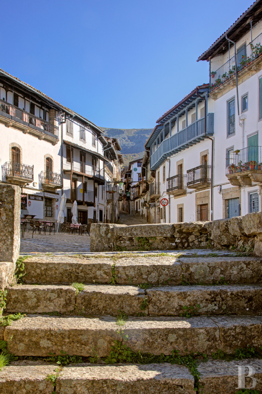 Candelario is one of those mountain villages where time leaves no trace, where every stone tells a story of necessity. Perched in the Sierra de Béjar, ranked among the most beautiful in Spain, it owes its character to a tradition: that of artisan pork butchers who, since the 18th century, have shaped its architecture. The house we are visiting bears witness to this. Built to house both a family and a craft, it combines thick walls, wooden galleries and large double doors, all designed to withstand the cold and allow meat to dry. The interior spaces still bear the mark of this dual purpose. Outside, rushing waterways line the cobbled streets. The whitewashed façades stand out against a wooded backdrop that rises to over 2,000 metres. The whole forms a setting whose authenticity lies less in its beauty than in its coherence. To buy here is to choose a place where history is not an argument but a tangible reality.