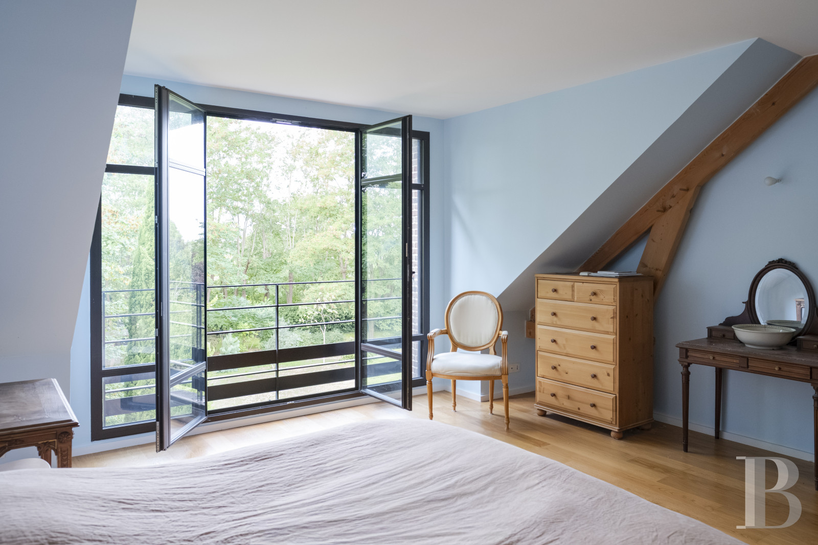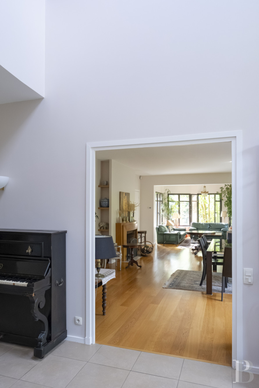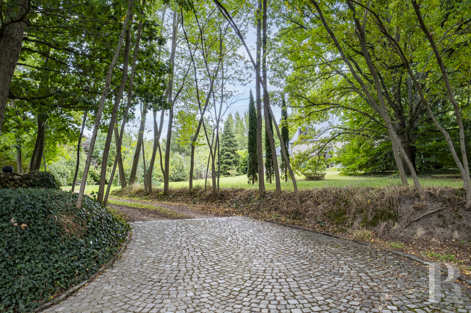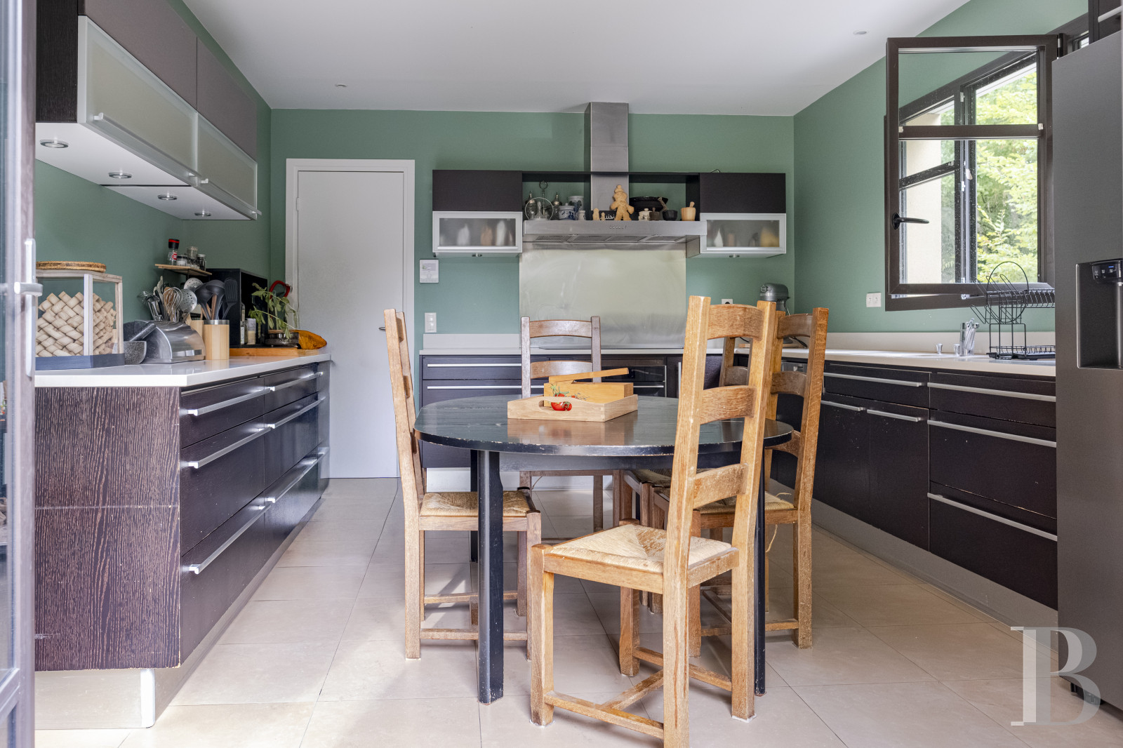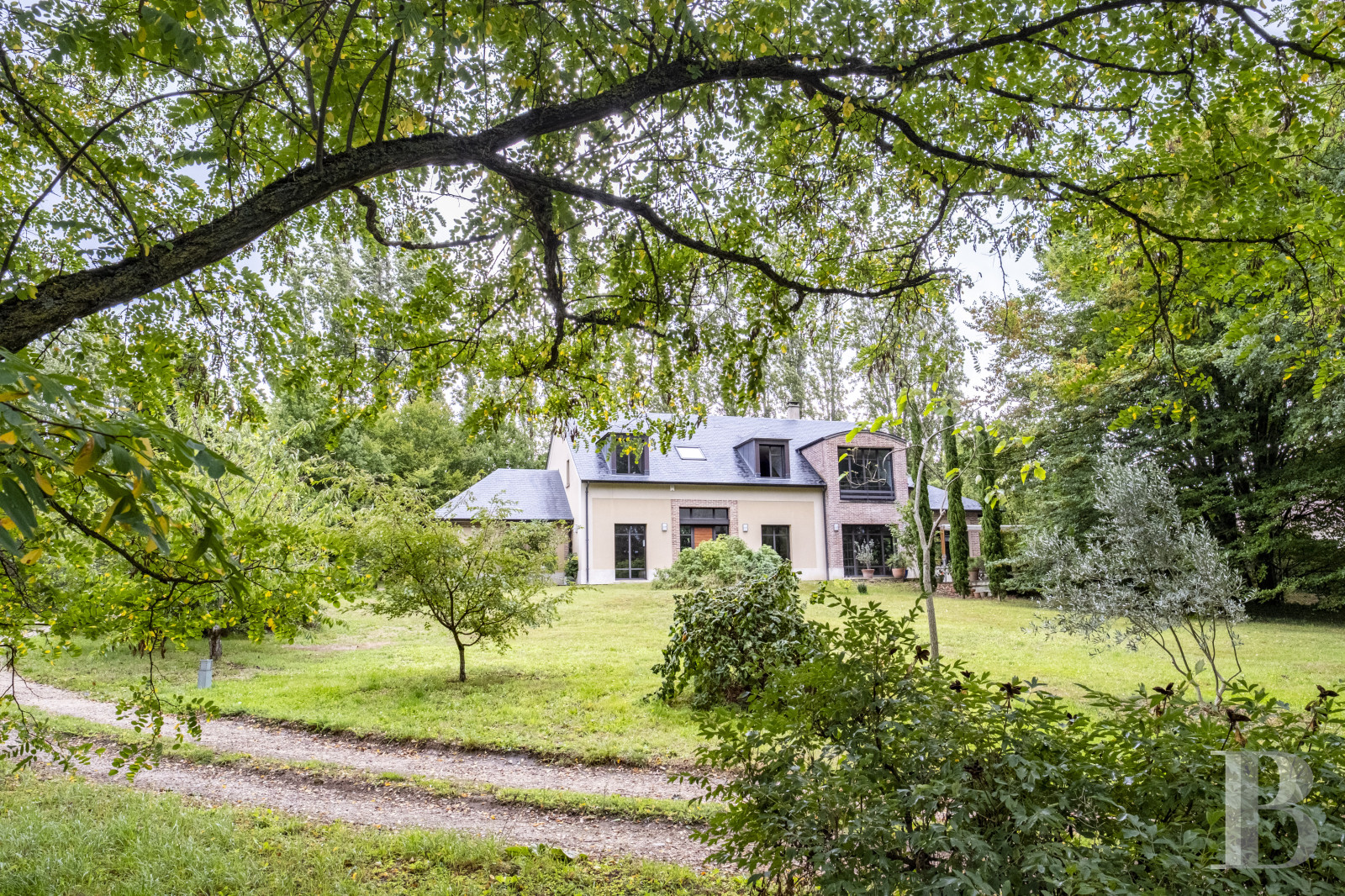 As for the two-storey dwelling, with approximately 230 m² of inhabitable floor area, it contains five bedrooms, including one on the ground floor, and a living room of nearly 80 m², while the basement and garage extend over approximately 180 m². With underfloor heating on every level of the dwelling, on its garden side, an immense flagstone patio, with both an area for dining and relaxing, extends the ground floor towards the exterior.