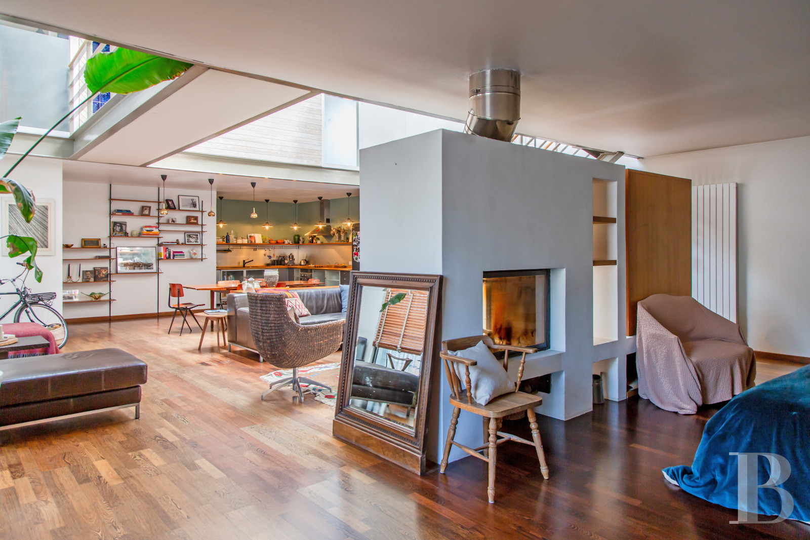 This remarkable home has kept traces of the building’s past, from its load-bearing walls to its tall windows and industrial-style glazing. Yet the interior design is smooth with that modern spirit of an open-plan penthouse. The walkway, suspended above the central area, underlines the impressive spaciousness and showcases the natural light in a unique way. With the terrace, a rare asset in a city, you can make the most of the property’s outdoor space. And the double-sided fireplace, the heart of the ground floor, makes the home a truly welcoming place. This splendid dwelling would delight lovers of unusual properties that combine tradition with modernity. It would suit family life, yet you could easily combine life here with an artistic pursuit or a professional workplace. The whole home is in good condition. It could have up to three large separate bedrooms.