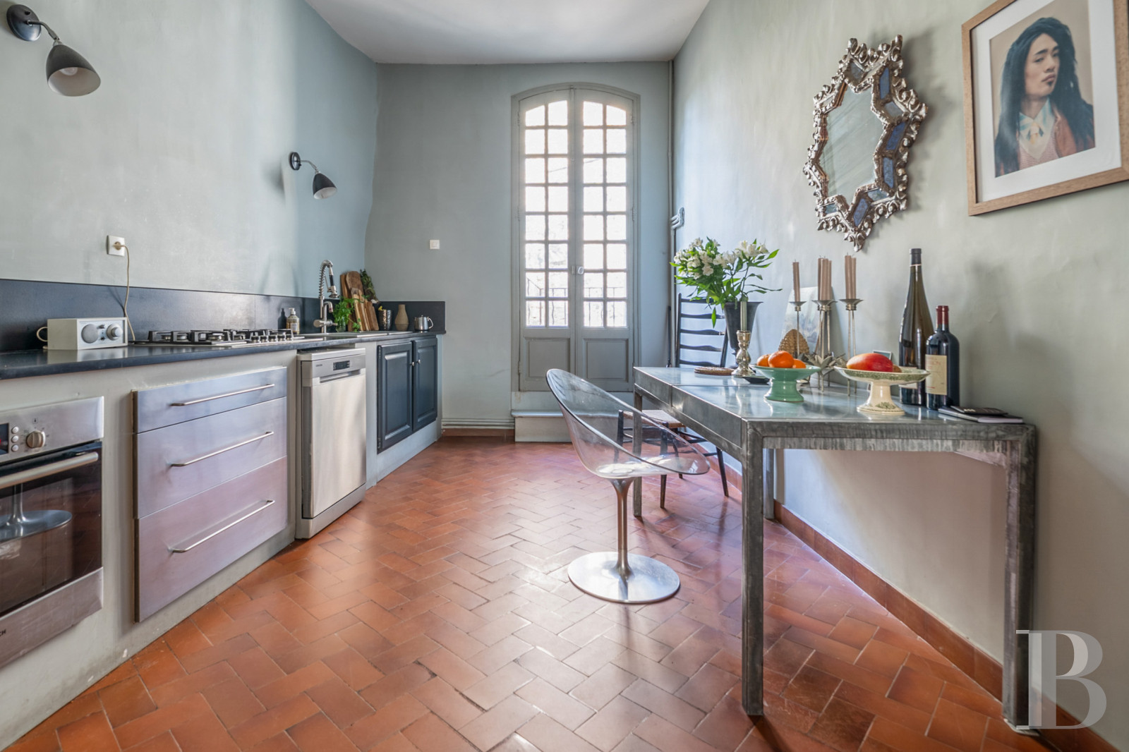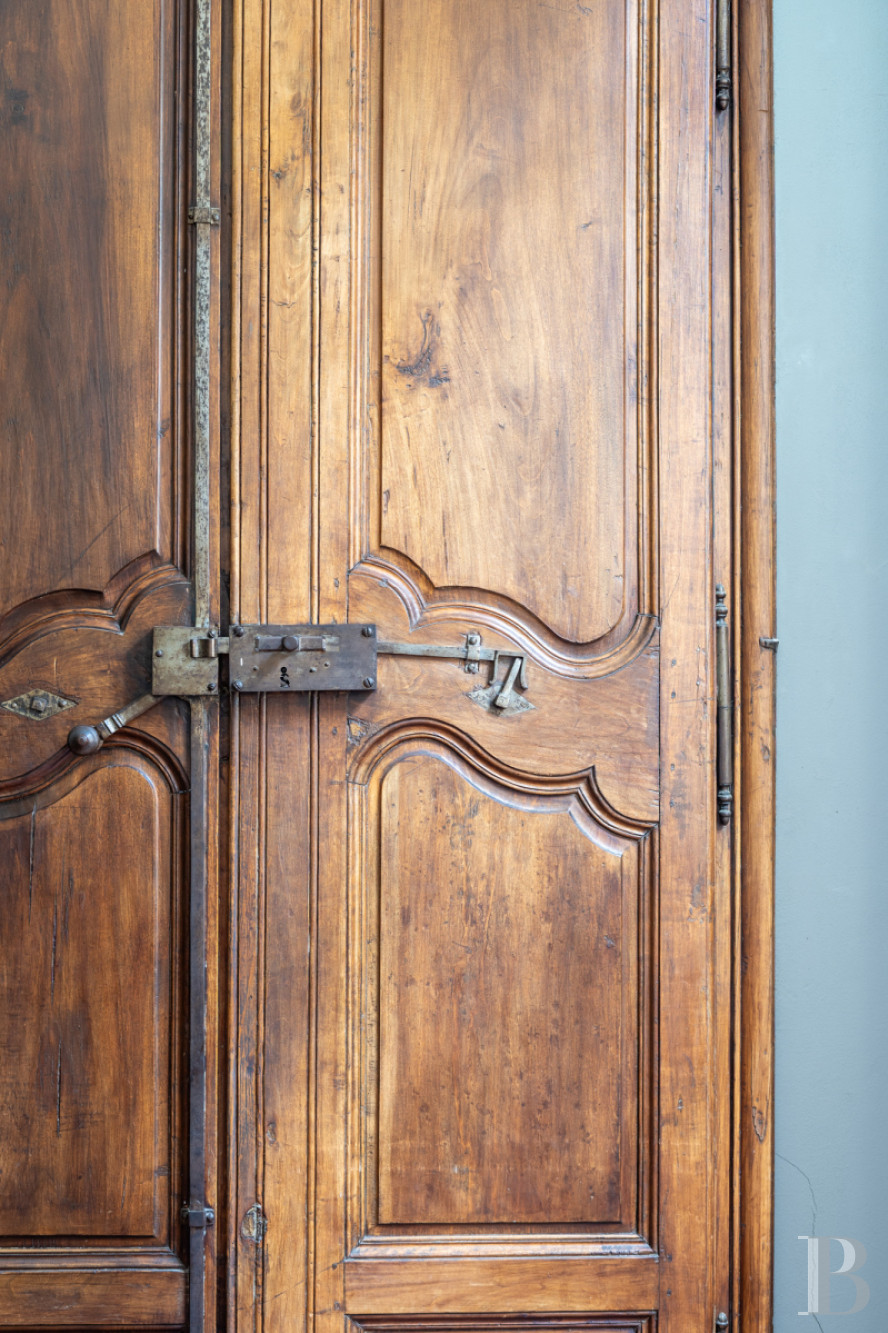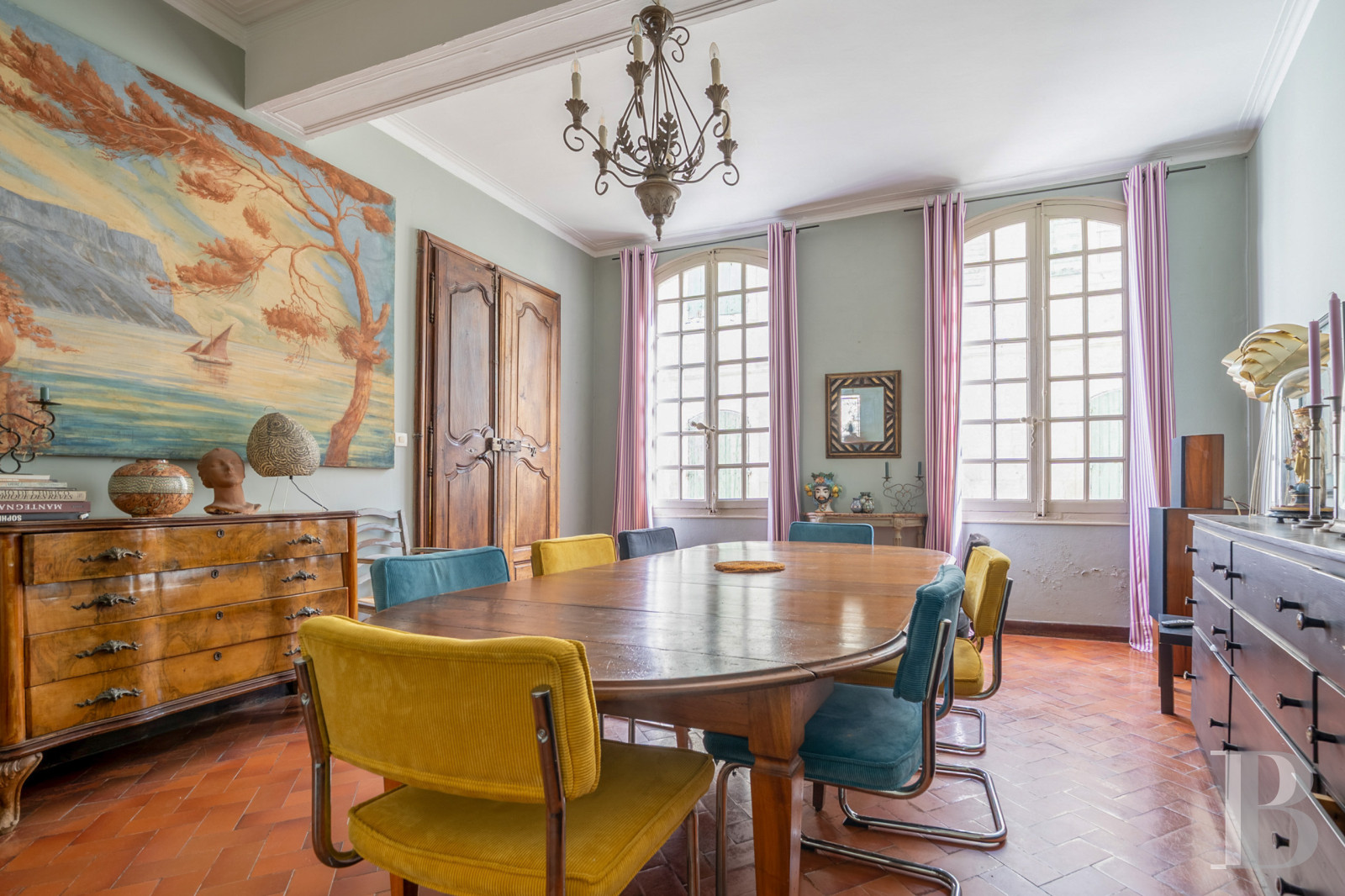 As for the series of polished oak double doors, they create the dwelling’s decorative leitmotif on every floor and vertically cadence the warm, uniform colours of its walls, whereas, under the staircase’s vault, two tall small-paned windows bathe its Barbentane stone steps in abundant sunlight, the latter of which are safeguarded by a wrought-iron bannister. Last, but not least, towards the back of the entrance hall, a door opens on to the rear courtyard as well as a garage whose door gives on to the adjacent street.