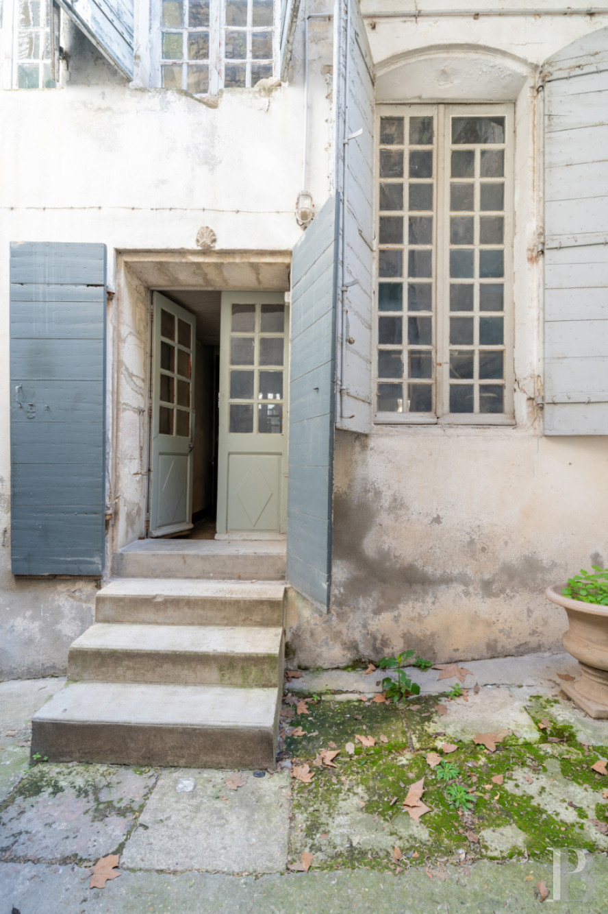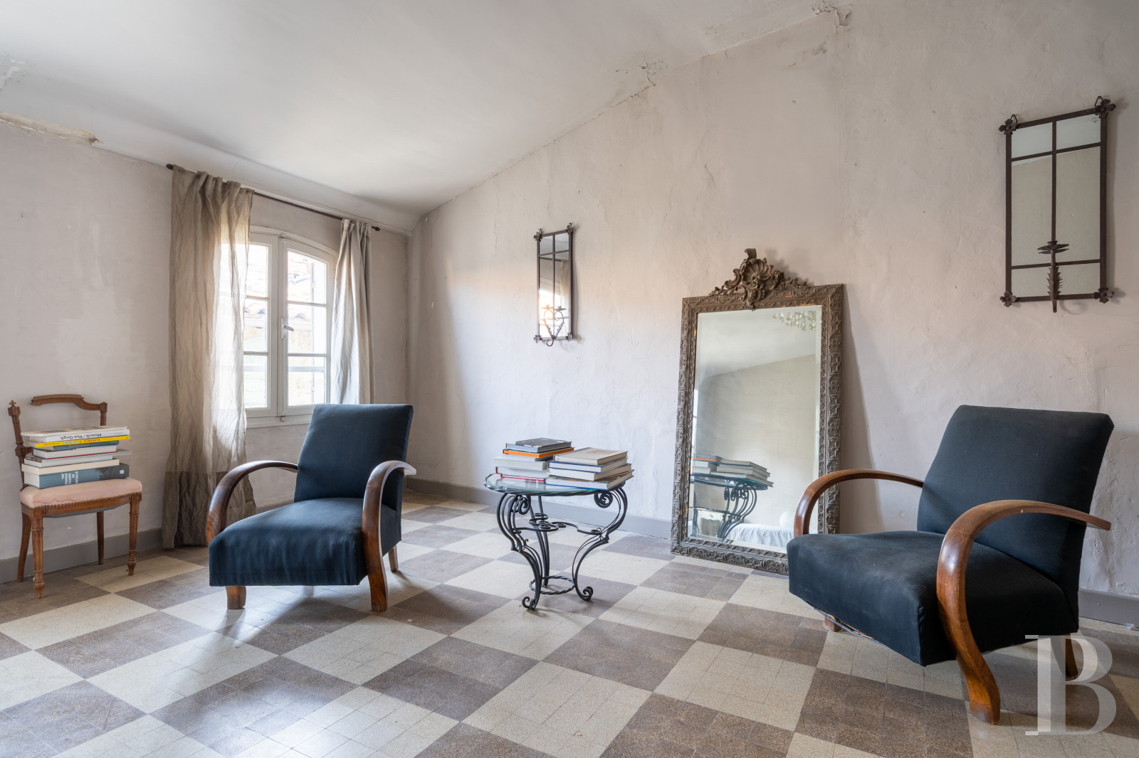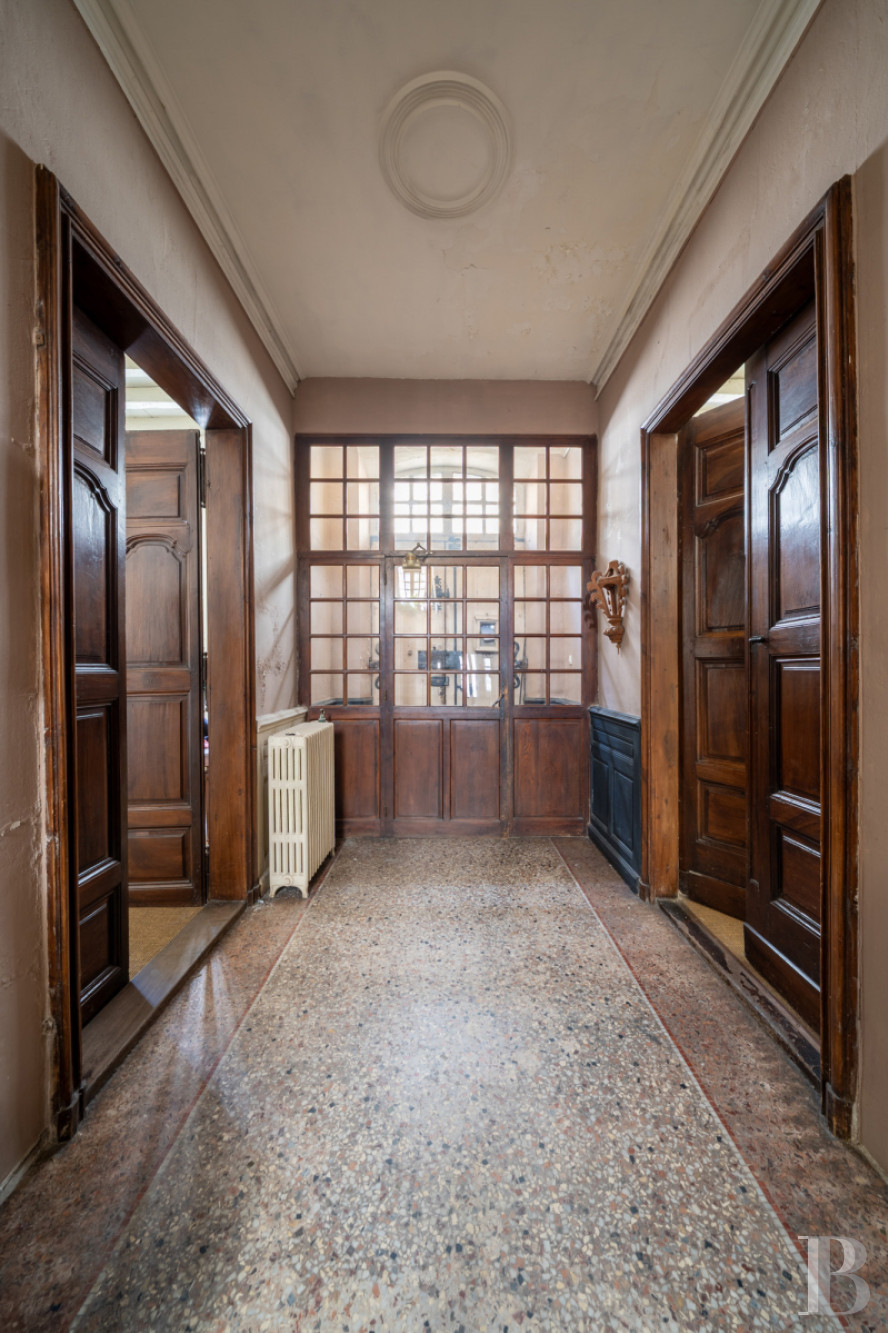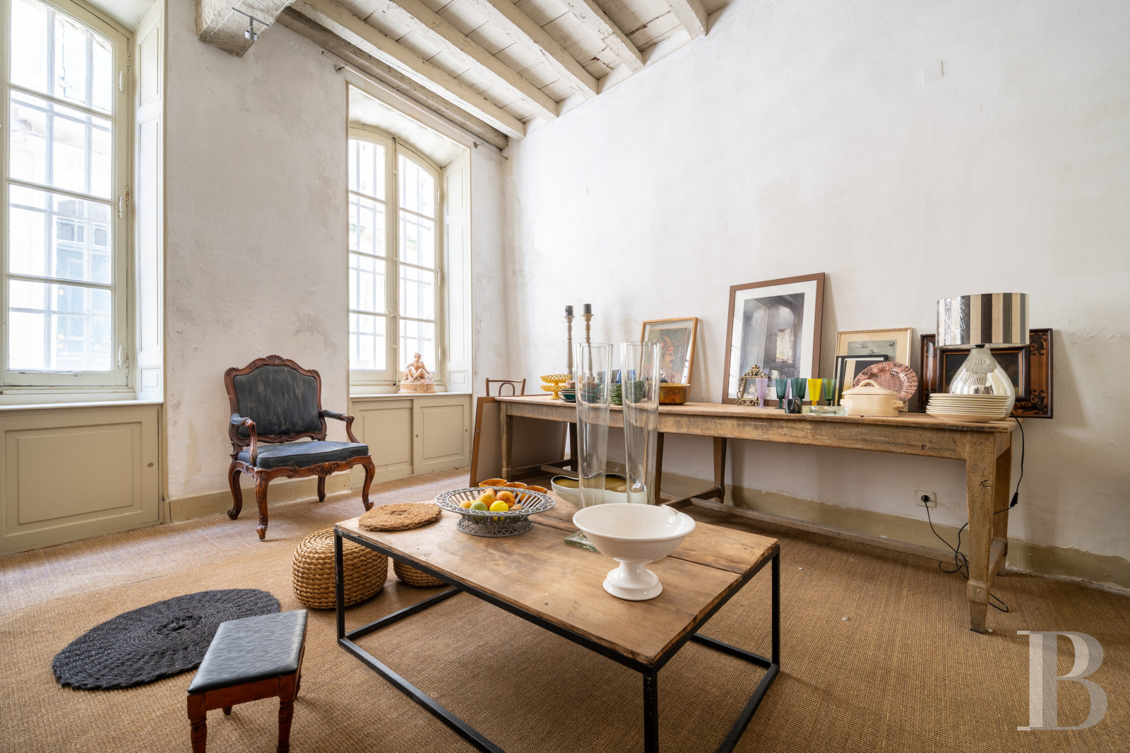 As for the series of polished oak double doors, they create the dwelling’s decorative leitmotif on every floor and vertically cadence the warm, uniform colours of its walls, whereas, under the staircase’s vault, two tall small-paned windows bathe its Barbentane stone steps in abundant sunlight, the latter of which are safeguarded by a wrought-iron bannister. Last, but not least, towards the back of the entrance hall, a door opens on to the rear courtyard as well as a garage whose door gives on to the adjacent street.
