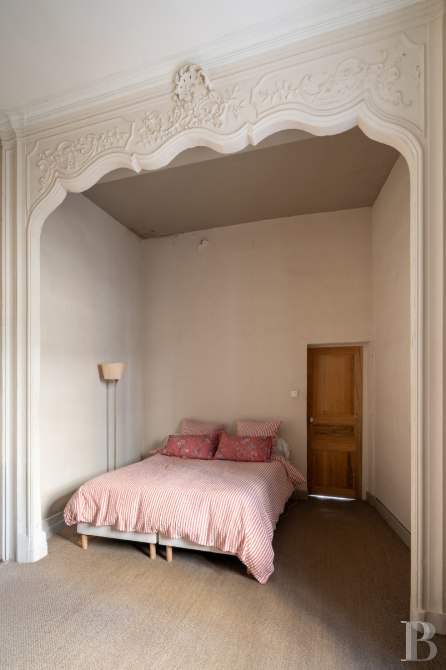In addition, a third bedroom, located on this level, contains a bed placed within an immense moulded alcove featuring an eye-catching design of Italianate curves and counter-curves, while a door, located in the alcove itself, currently provides access to a bathroom, which was, in all likelihood, a former antechamber.