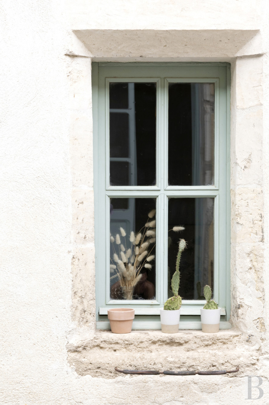 The house has a ground floor and a first floor. It is crowned with a roof of barrel tiles. Its facade is coated with ochre-toned rendering. Tall, small-paned windows and glazed doors in painted wooden frames are fitted with pale-green shutters that go well with the place’s spirit. Natural light floods into the different rooms as these windows face north, but light also comes in through broad, grey, metal-framed French windows that face west and harmoniously give the place’s old heritage a modern touch. Upstairs, a raised terrace fits in between the different rooms, looking down at the court and naturally extending the rooms for everyday living.