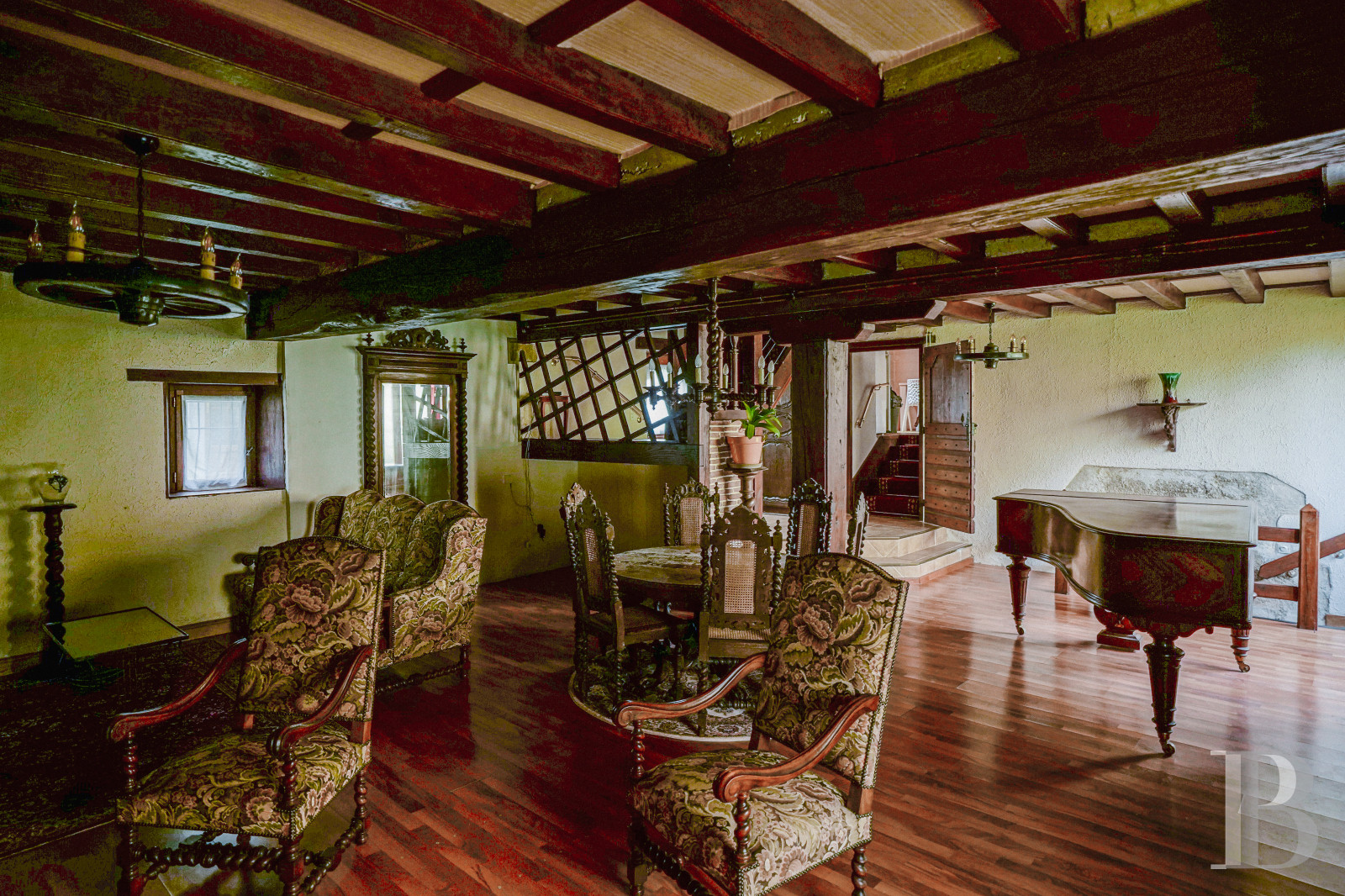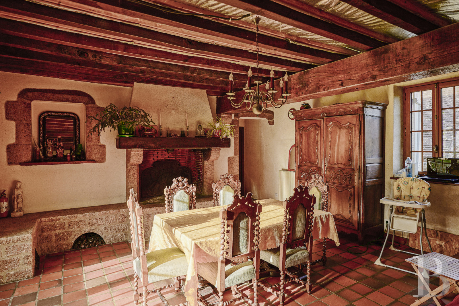 Surrounded by a patio and a flower garden, the two elongated buildings are positioned on a northeast/southwest axis. With a bedroom and a bathroom to the west, topped with a convertible attic space, of 90 m², its central portion contains a fitted kitchen as well as the living room with a floor area of approximately 40 m². As for the latter, it features beige-colour plaster walls, terracotta floor tiles, visible ceiling beams, a Renaissance-era door, a large stone fireplace and direct access to the patio, while a wide triple-casement picture window with golden-colour oak latticing bathes this room in ample sunlight.