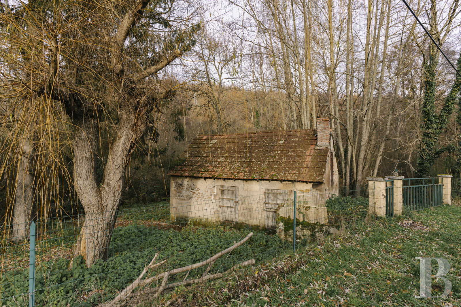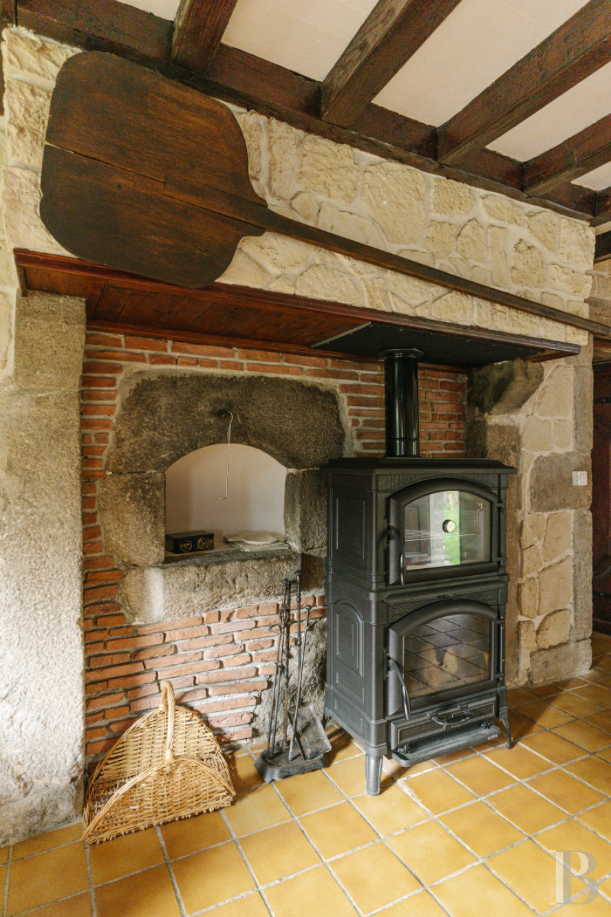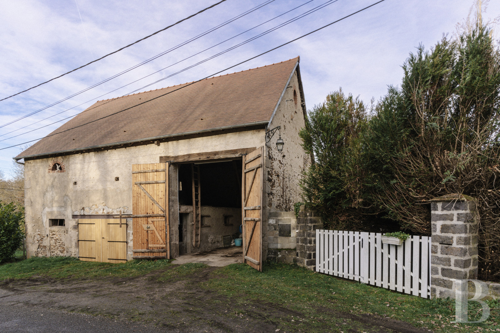 Not far from the property’s entrance, the former barn, with approximately 100 m², is topped with a tile roof and has been converted into a garage and a workshop, while directly opposite stands a 20-m² shed and a chicken coop. In addition, to the north of the property, on an adjacent piece of land, former stables have been transformed into a small cottage with a patio, shaded by verdant trees.
